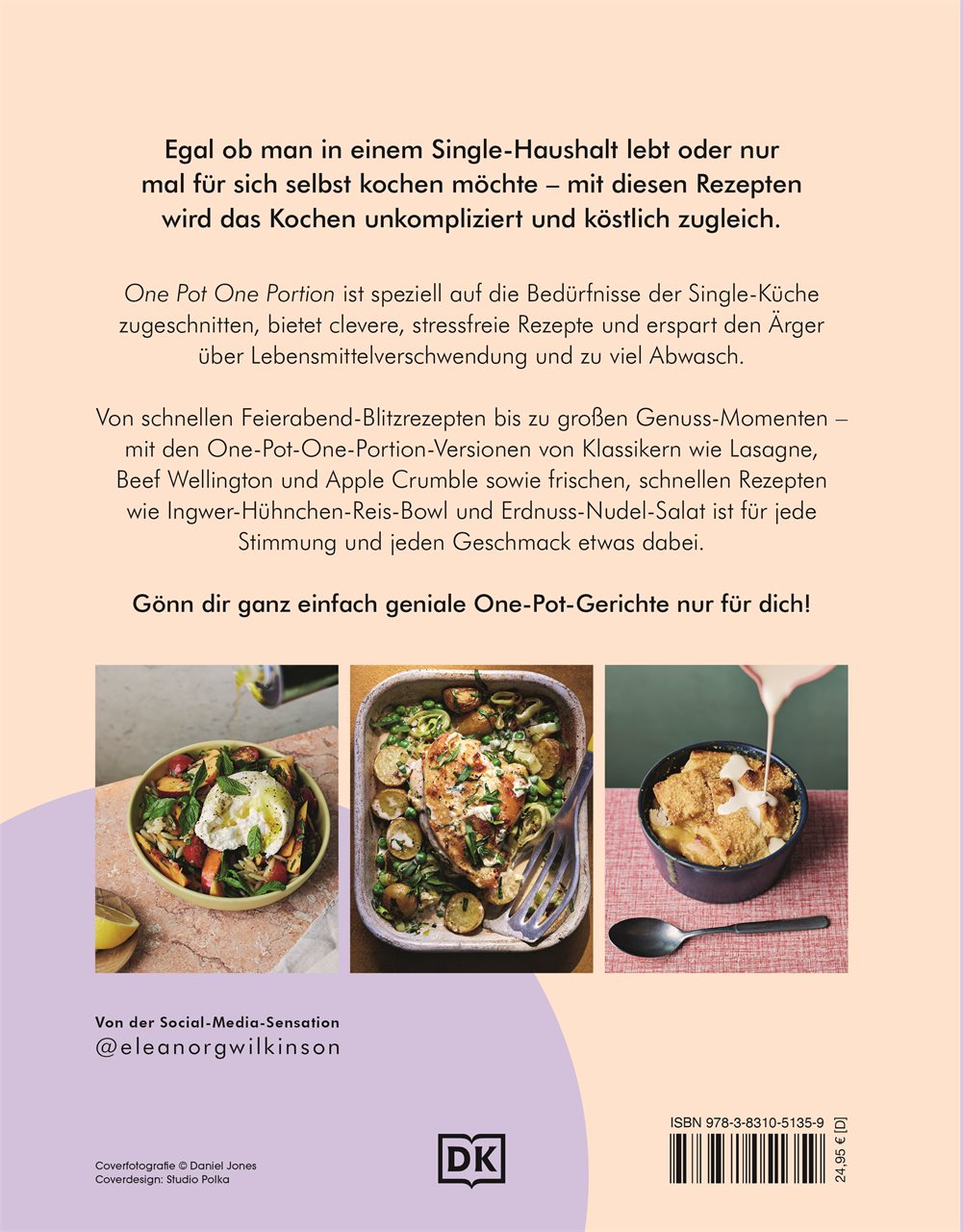 Du lebst alleine, kochst gerne und hast genug vom Abwasch? Dann bist Du hier genau richtig! Die Social Media-Köchin Eleanor Wilkinson präsentiert in ihrem One-Pot-Kochbuch einfache One-Pot-Gerichte, die perfekt in Deinen Alltag passen. Die Rezepte für 1 Person sind für alle gedacht, die schnell und mit minimalem Geschirreinsatz kochen möchten. Hast Du Lust auf etwas Frisches wie einen Erdnuss-Nudel-Salat oder lieber auf Seelenfutter wie einen Apple Crumble? Hier findest Du für jede Stimmung das passende Gericht! Lass Dich von den fabelhaften Rezepten inspirieren und verwöhne Dich selbst mit köstlichen Gerichten aus einem Topf. Das geniale Single-Kochbuch ist Dein perfekter täglicher Begleiter in der Küche!