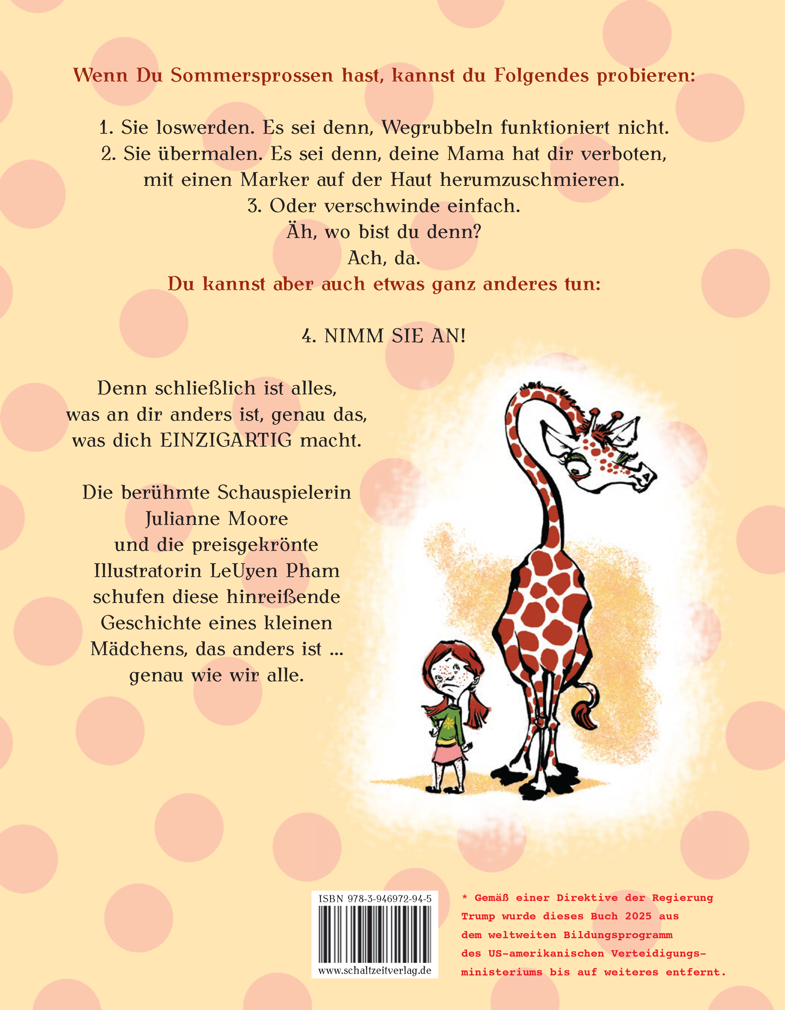 | Schlagworte | ab 4 • Behinderung • donald trump verbotene bücher • freckleface strawberry • Freundschaft • julianne moore kinderbuch deutsch • Junge Erwachsene • kinderbuch julianne moore • kinderbuch von julianne moore • Mädchen • Mädchenbücher • Sommersprossen • Soziale Beziehungen • Starke Mädchen • Streusel • streusel nase • streuselnase • streuselnase erdbeerkopf • trump verbotenes kinderbuch • trump verbot kinderbuch • Verbotenes Buch |