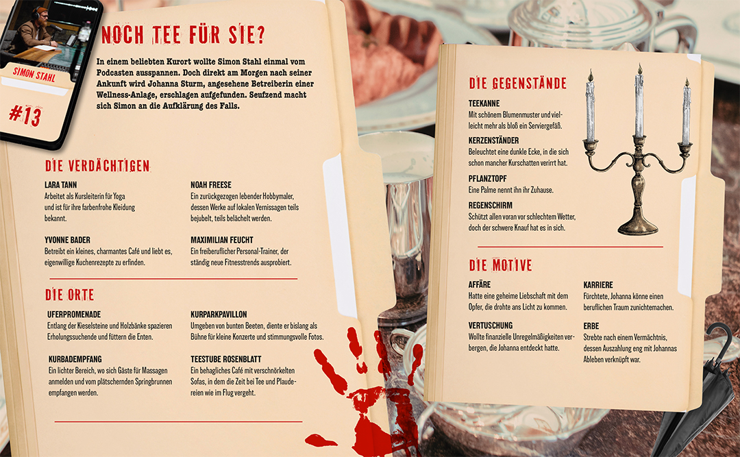 Jeden Tag ein neuer Tatort - und viel zu viele Hinweise. Nun sind deine deduktiven Fähigkeiten gefragt. Wer war wann wo? Welcher Gegenstand fehlt? Und wer steckt wirklich hinter dem Verbrechen?