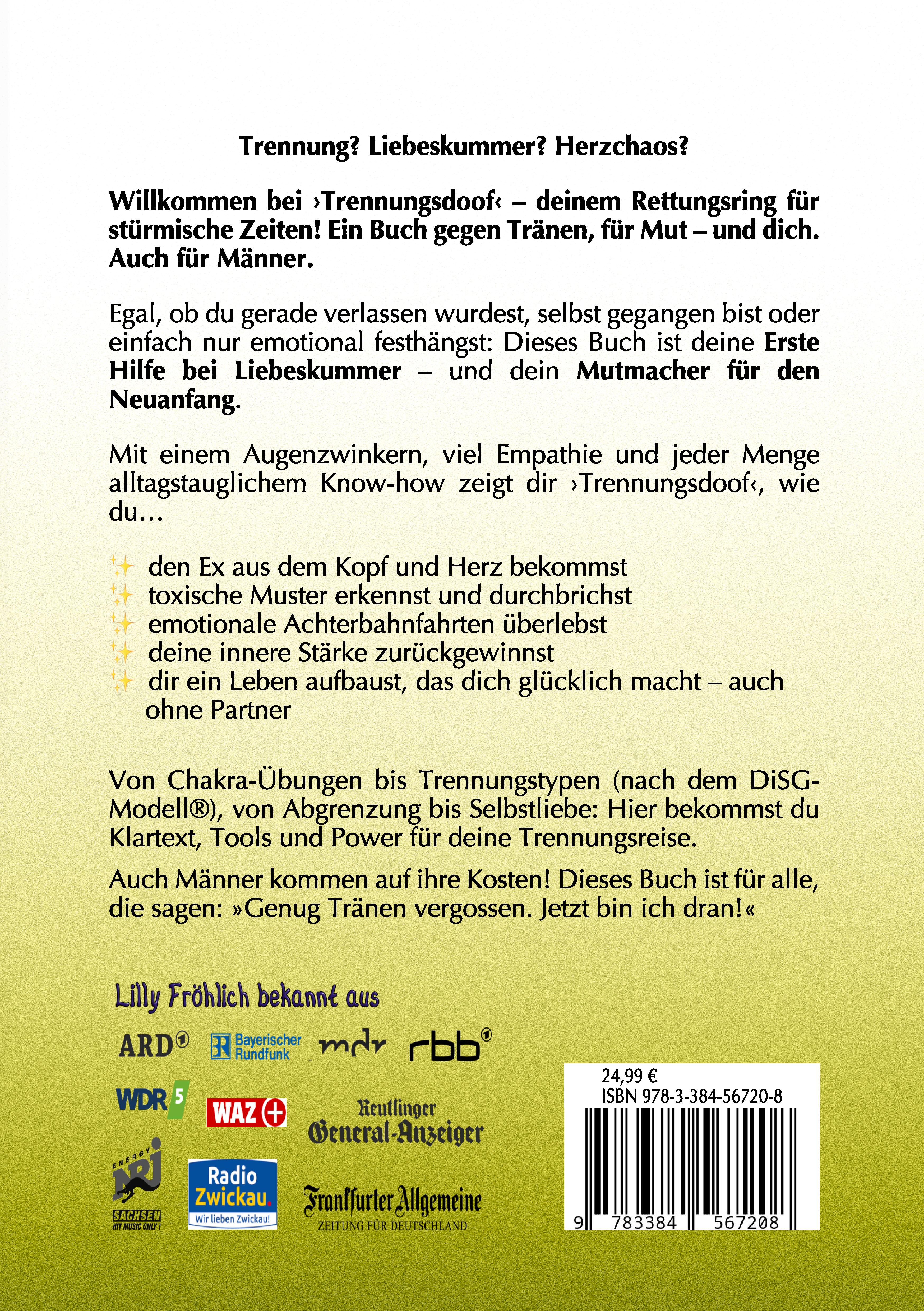 | Schlagworte | Abgrenzung • Abgrenzungsstrategien • Abschied • Beziehung • Chakra-Übungen • Chakren • Doofiversum • Drama • Ehe • Ehescheidung • emotionale abhängigkeit • Erste Hilfe • Ex-Partner • Frauen • Herzschmerz • Kinder • Liebe • Liebeskummer • Männer • Mut • Mutmachen • Narzissmus • Narzisst • Neuanfang • Neustart • Partner • Ratgeber • Red Flags • rettungsanker • Rettungsring • Selbstachtung • Selbstliebe • Selbstwertgefühl • Sofortmaßnahmen • toxische Beziehung • toxischer liebeskummer • toxischer partner • Tränen • Trennung • Trennungsdoof • Trennungsratgeber • Trennungsschmerz • wahrhaftige Liebe • Weinen |