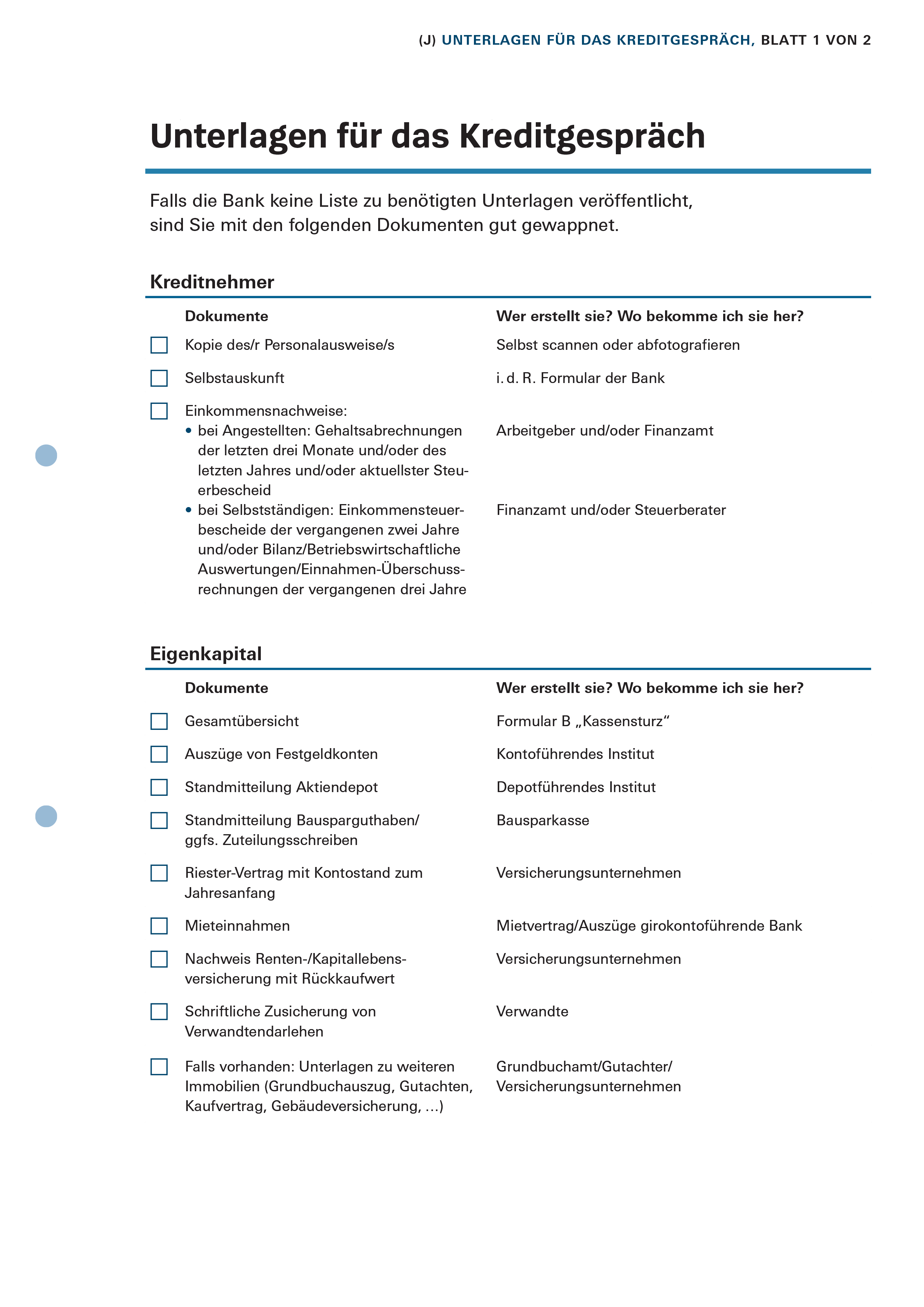 Besonders hilfreich: der umfangreiche Praxisteil mit Checklisten für den Immobilienkauf, Tipps zum notwendigen Eigenkapital, Musterformularen und selbstrechnenden Tabellen. Damit behalten Sie den Überblick über alle Kosten und Planungsschritte.