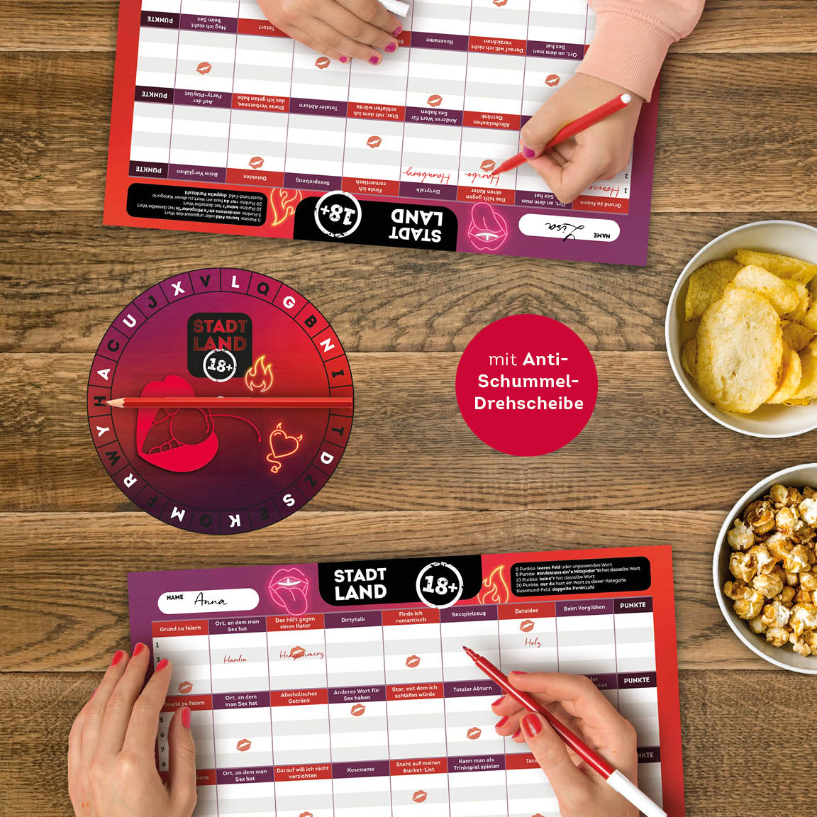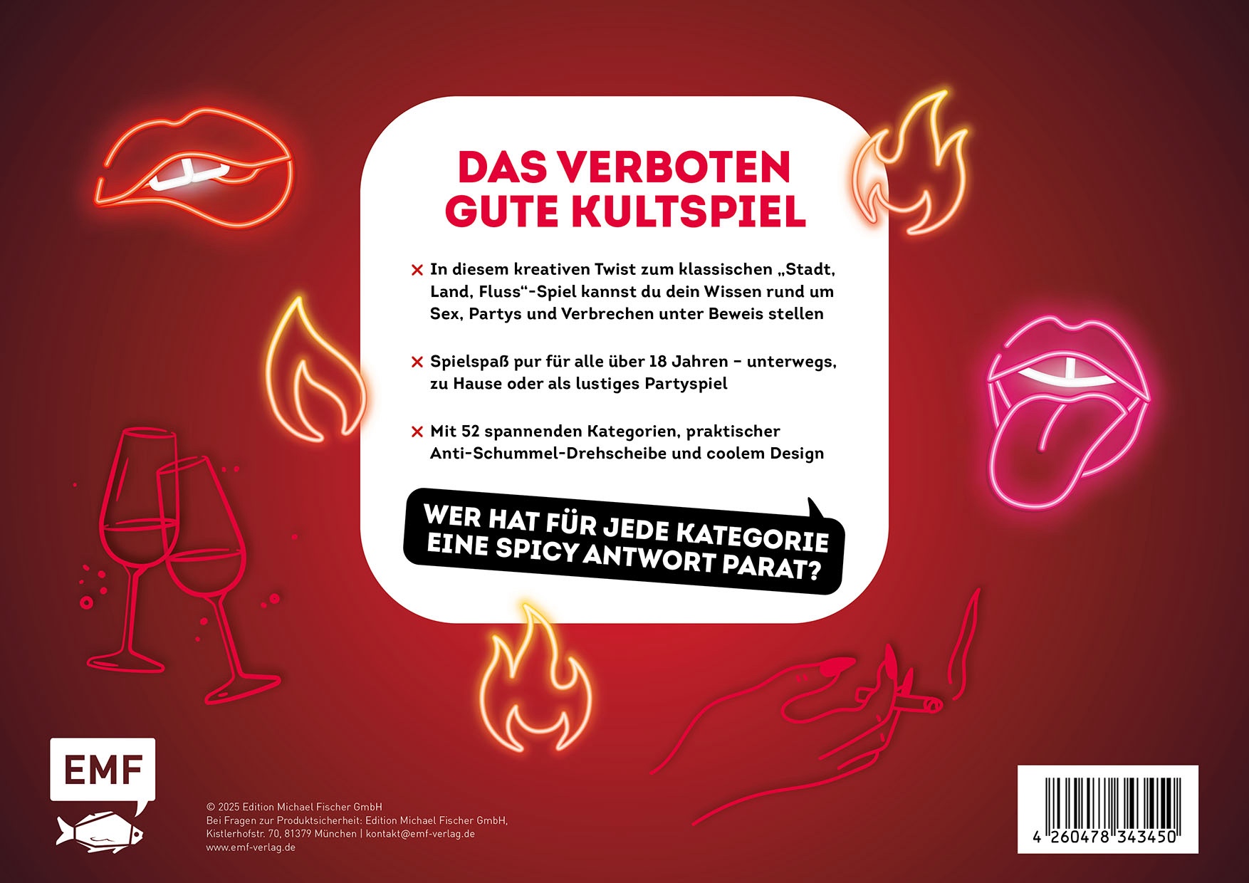 Egal wo du bist - mit diesem verboten guten Stadt, Land, Ü18-Block bringst du immer eine große Portion Spaß mit in die Runde! In 52 Kategorien könnt ihr euer Wissen rund um Sex, Partys und Verbrechen testen und eure Kreativität unter Beweis stellen. Der Spieleblock überzeugt mit coolem Design und spicy Themen - perfekt für alle Stadt, Land, Fluss-Fans. Von einfachen Fragen bis hin zu kniffligen Kategorien - hier ist alles dabei!