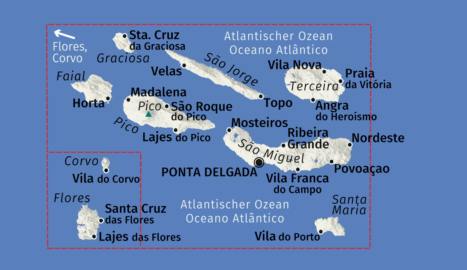 Über die Region: Die Azoren verzaubern mit ihrer vulkanischen Landschaft aus grünen Hügeln, türkisblauen Seen und schroffen Küsten. Sao Miguel beeindruckt mit dem Kratersee Lagoa das Sete Cidades. Pico, der höchste Berg Portugals, ragt majestätisch auf der Insel Pico empor. Wanderer finden auf den Azoren ein wahres Paradies. Die Azoren verzaubern mit ihrer vulkanischen Landschaft aus grünen Hügeln, türkisblauen Seen und schroffen Küsten. Sao Miguel beeindruckt mit dem Kratersee Lagoa das Sete Cidades. Pico, der höchste Berg Portugals, ragt majestätisch auf der Insel Pico empor. Wanderer finden auf den Azoren ein wahres Paradies.