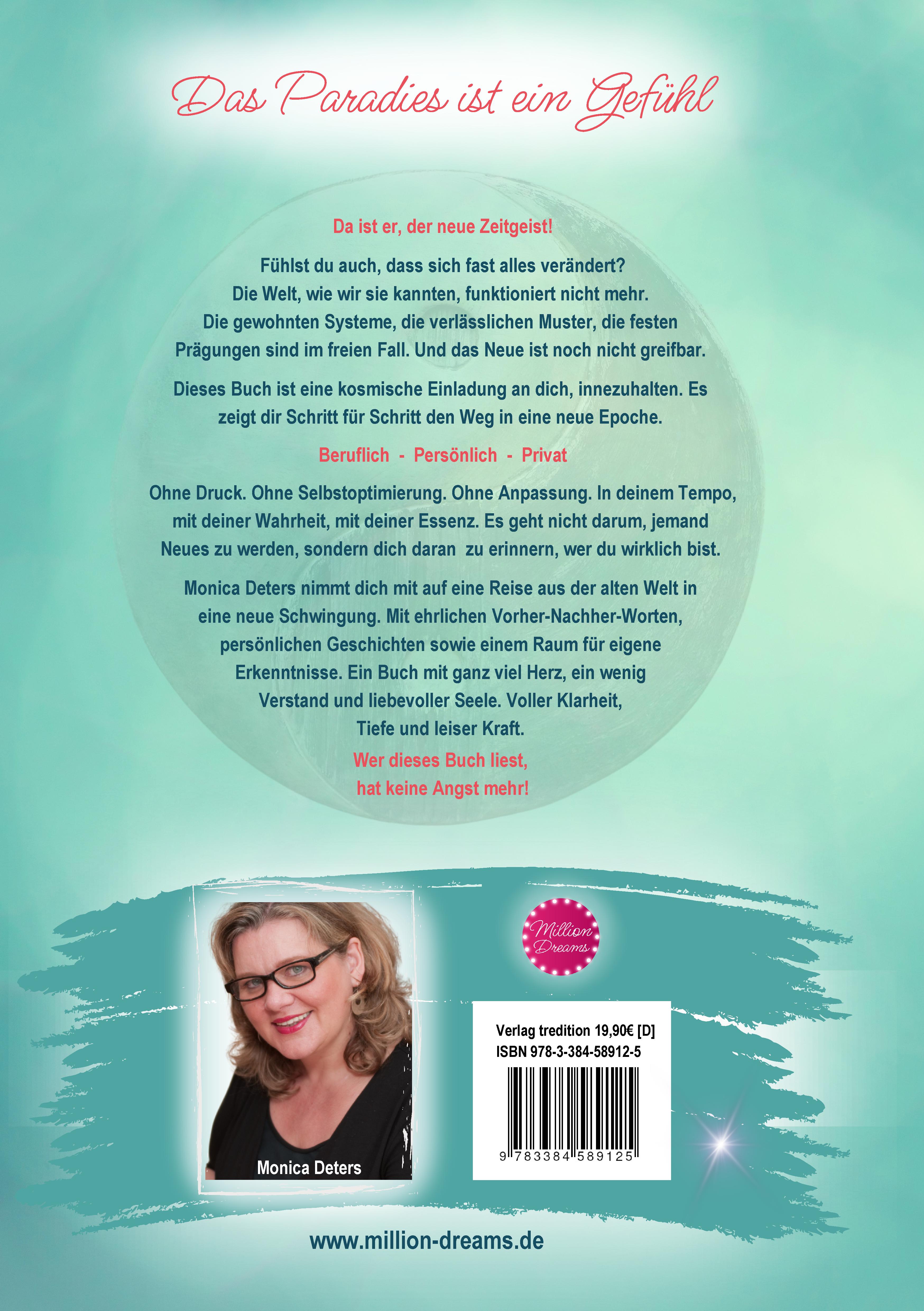 Monica Deters widmet ihr Leben neben ihrem verhaltensauffälligen Hund Rocko, Menschen, deren Träume geplatzt sind („Heilige Arschtritte“) und dennoch nach der Krise wieder durchstarten wollen. Sie will, dass so viele Menschen wie möglich, ihr Leben (wieder) schön machen! Ihr Ziel ist es, dass Menschen wieder Lust bekommen, neu zu träumen, und sich diese Träume auch erfüllen, damit sie ein für sich sinnvolleres, leichteres und erfüllteres Leben leben können. Das ist ihre Lebensvision! Außerdem stärkt sie Menschen, die Menschen stärken. Monica ist seit vielen Jahren erfolgreiche Motivationsrednerin, Seminaranbieterin, Unternehmerin, Autorin und Bestseller-Autorin mehrerer Bücher. Sie hat sehr nützli-che Methoden im Bereich Persönlichkeitsentwicklung und Business-Strategien entwickelt. Sie verfügt über eine mehr als 20-jährige Berufserfahrung bei verschiede-nen Global Playern (Vorstandsassistentin). Mit ihrem Unternehmen „MillionDreams“ und ihren YouTube-Online-Shows verbindet sie Entertainment mit Tiefsinnigkeit. Sie ist seit 2007 selbstständig und stärkt Menschen, die sich verändern möchten oder müssen. www.million-dreams.de