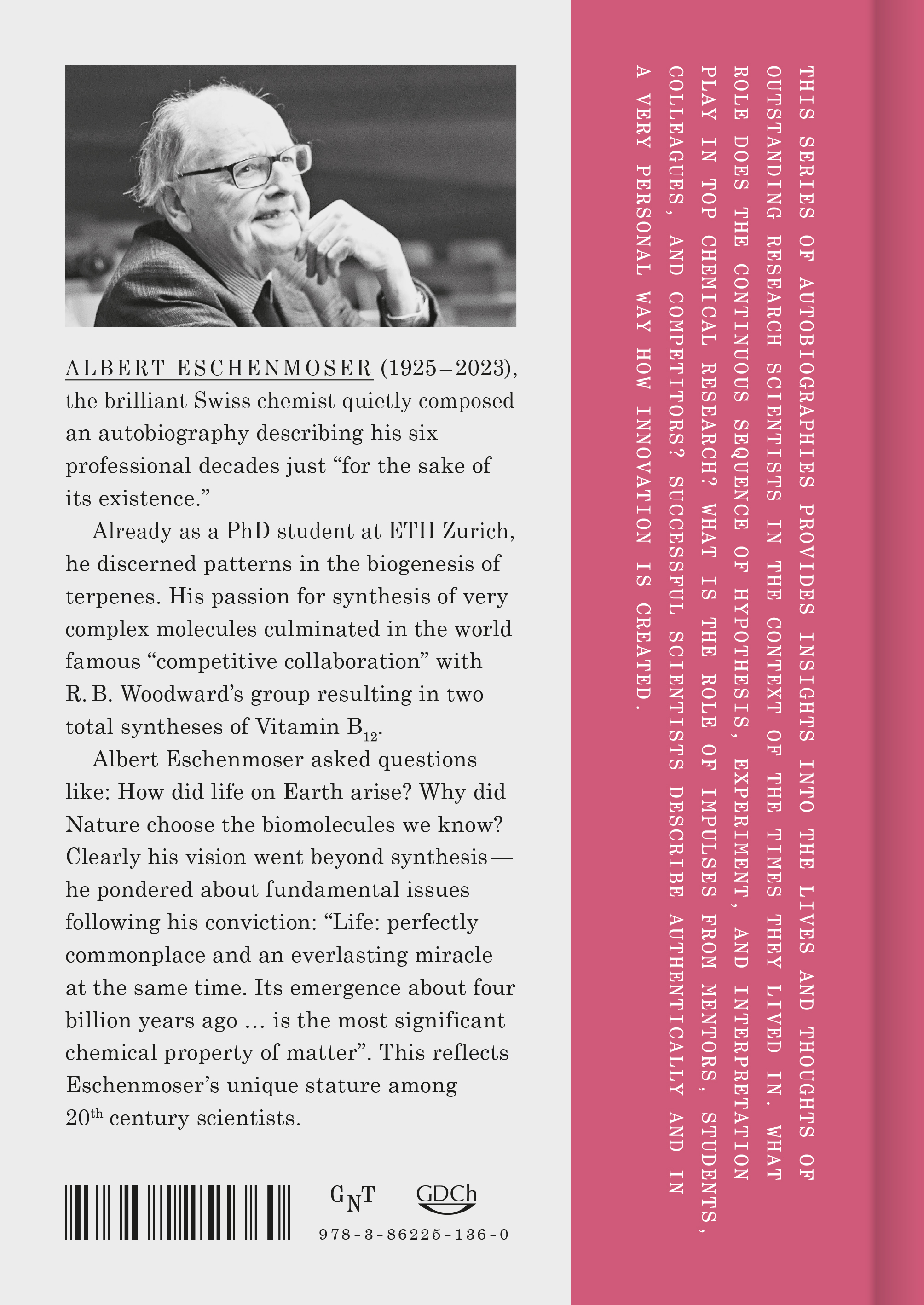 ALBERT ESCHENMOSER (1925--2023), the brilliant Swiss chemist quietly composed an autobiography describing his six professional decades just "for the sake of its existence."
