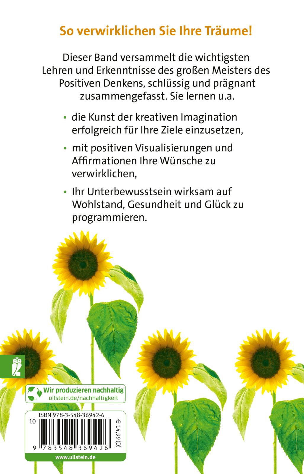 Dieser Band versammelt die wichtigsten Lehren und Erkenntnisse des großen Meisters des Positiven Denkens, schlüssig und prägnant zusammengefasst. Sie lernen u.a., - die Kunst der kreativen Imagination erfolgreich für Ihre Ziele einzusetzen, - mit positiven Visualisierungen und Affirmationen Ihre Wünsche zu verwirklichen, - Ihr Unterbewusstsein wirksam auf Wohlstand, Gesundheit und Glück zu programmieren.