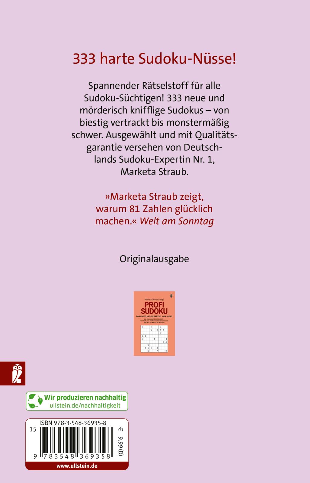 333 neue und mörderisch knifflige Sudokus - von biestig vertrackt bis monstermäßig schwer. Ausgewählt und mit Qualitätsgarantie versehen von Deutschlands Sudoku- Expertin Nr. 1, Marketa Straub. Spannender Rätselstoff für alle Süchtigen!