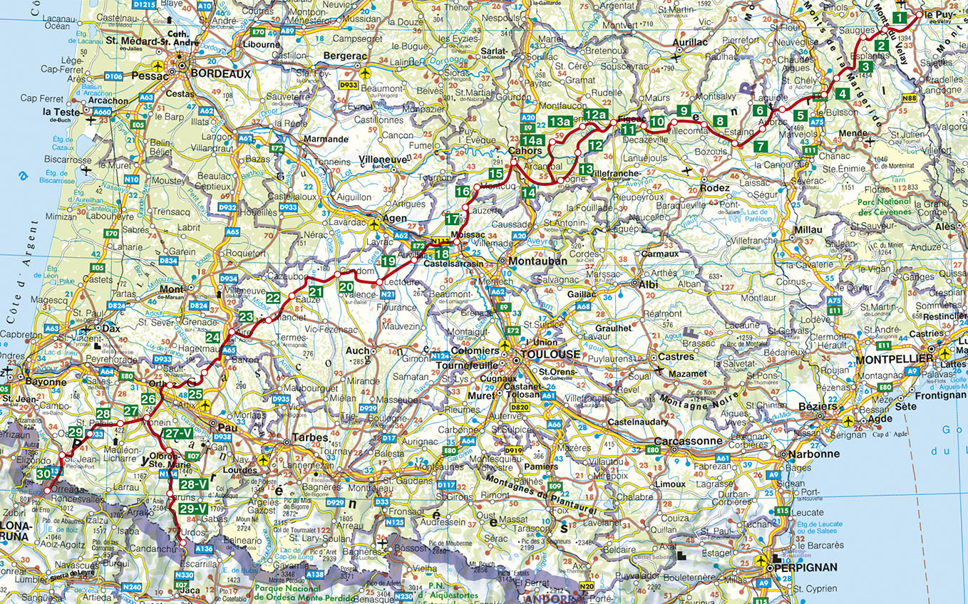 Via Podiensis von Le Puy-en-Velay bis zu den Pyrenäen. 33 Etappen. Mit GPS-Daten