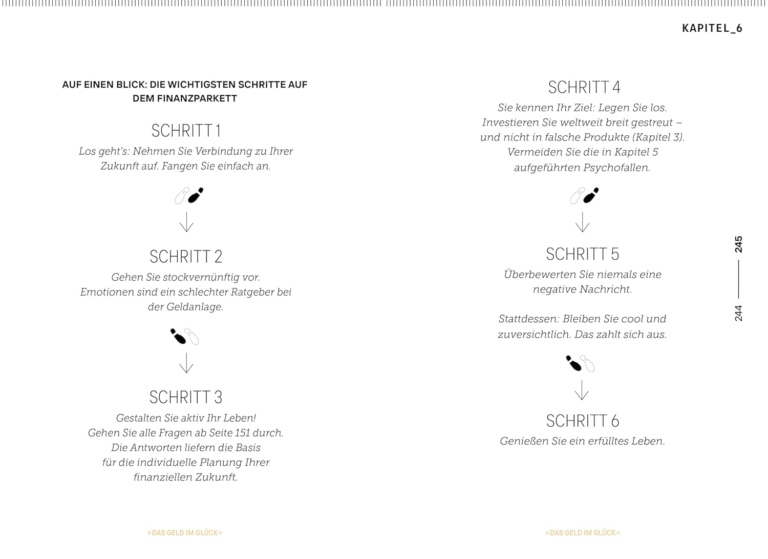 Finanzielles Wohlbefinden ist für unsere Lebensqualität ebenso wichtig wie Selbstfürsorge, Respekt und ein stabiles soziales Umfeld. Bestseller GELD IM GLÜCK ist das richtige Buch für alle, die sich eine smarte Anleitung für den Weg in das persönliche finanzielle Glück wünschen. In einer klaren Schritt-für-Schritt-Anleitung erfahren die Leserinnen und Leser, wie sie sicher und gewinnbringend Vermögen aufbauen. Wo sehe ich mich in Zukunft, was möchte ich im Leben erreichen? Wie starte ich mit der Geldanlage? Was sind die Anfängerfehler – welches die psychologischen Fallen bei Investitionen? Wie investiere ich langfristig in ETFs, und wo soll ich mein Geld in Krisenzeiten anlegen? GELD IM GLÜCK kennt die wichtigsten Fragen und Antworten einer individuellen Finanzplanung für die Zukunft. Kapitel für Kapitel werden aus Einsteigern versierte, selbstbewusste Akteure und Akteurinnen auf dem Finanzparkett. Dabei unterstützen illustrative Guidelines und ganz unterschiedliche Erfahrungsberichte. Investieren lernen und Geld anlegen – der richtige Zeitpunkt ist immer: jetzt! Wer dieses Buch liest, wird Geldanlage endlich verstehen und loslegen wollen.