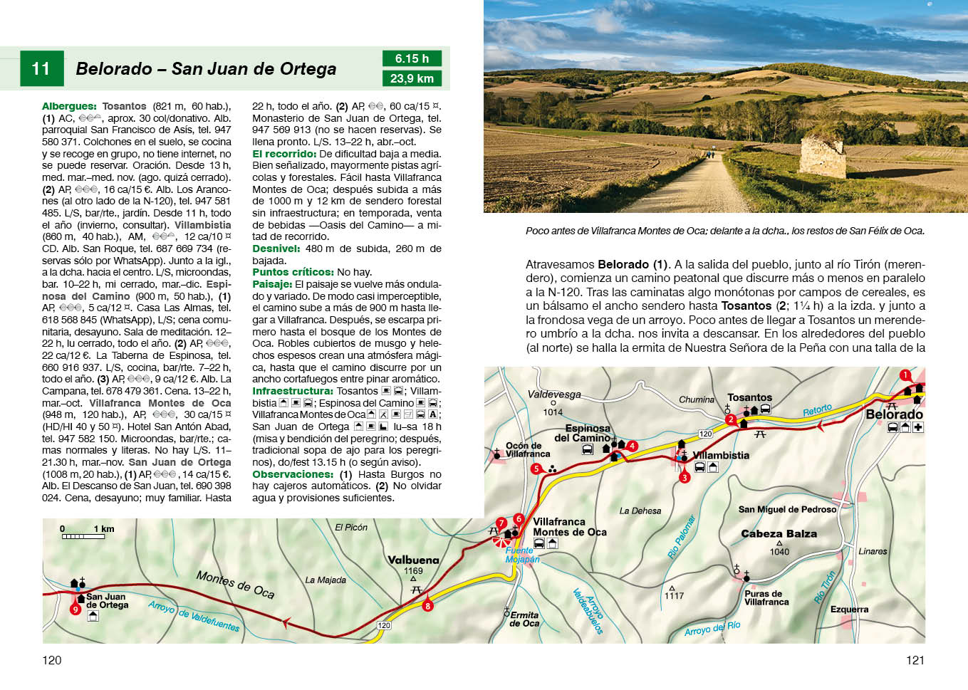 Mapas detallados con indicación de las distancias entre los albergues, perfiles orográficos de las etapas y descripciones precisas, así como numerosos datos relativos a las infraestructuras a lo largo del camino, como son atención médica, tiendas o bancos, facilitan la preparación de la travesía. Además se facilita información sobre la ubicación y el equipamiento de los albergues de peregrinos, calificados con una, dos o tres conchas de Santiago. Los útiles consejos relativos a la planificación de la travesía y al equipo, indicados al comienzo del libro, completan esta práctica guía excursionista. Se presta especial atención a monumentos históricos y naturales, particularidades regionales, fiestas locales y especialidades gastronómicas. Una selección de fotos transmite una primera impresión de la diversidad paisajística y cultural del Camino de Santiago.