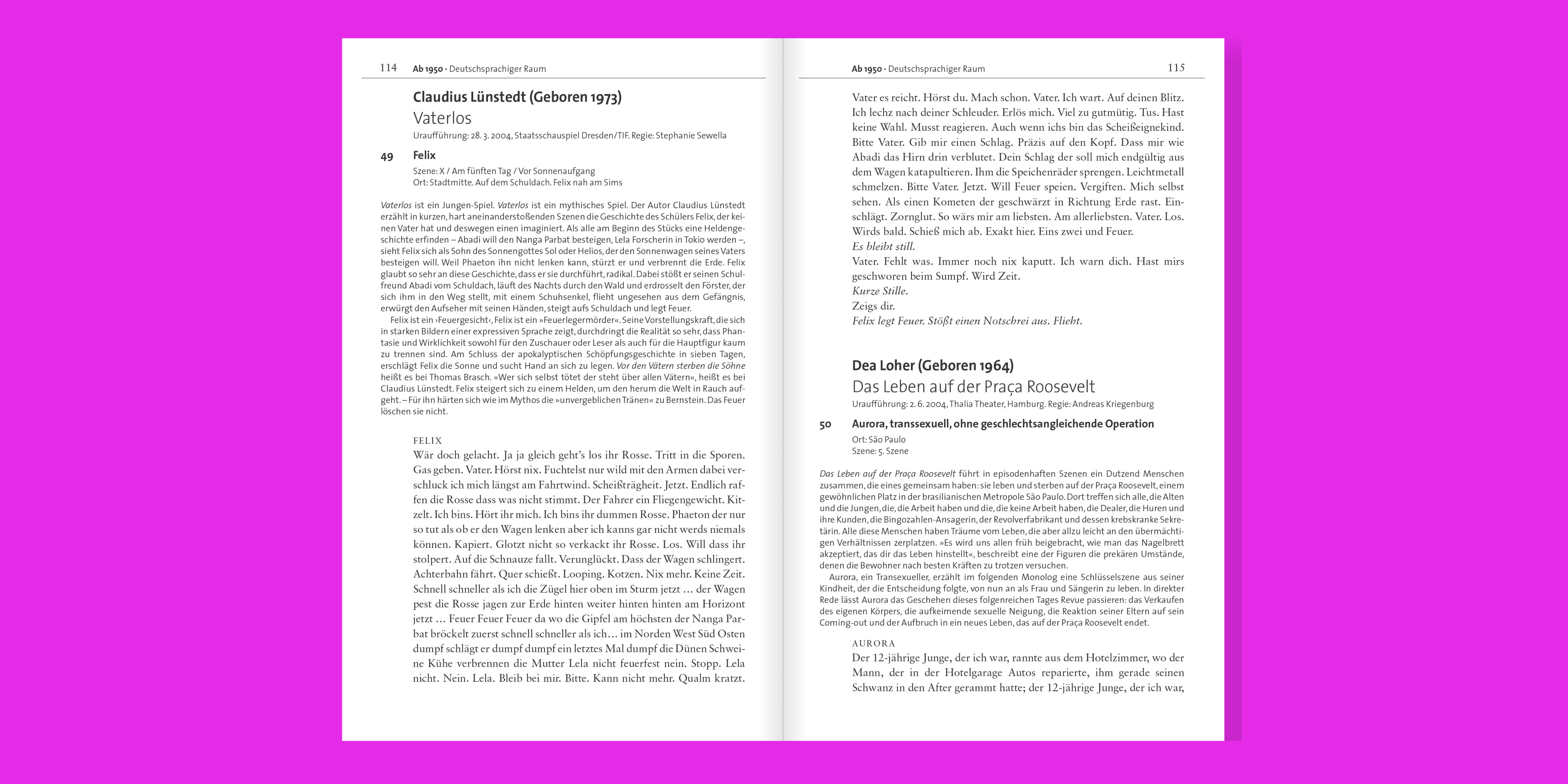 | Schlagworte | Almansor • Anke Roeder • Anton Tschechow • Anton Tschechow, Die Möwe • Ausbildung • Bearbeitung • Bearbeitung; Monolog; Monologe • Bedbound • Beruf • Clemens von Brentano • Clemens von Brentano, Ponce de Leon • Darsteller • Die Möwe • Dogland • Drama • Enda Walsh • Enda Walsh, Bedbound • Figur • Finnisch • HC/Sachbücher/Musik, Film, Theater/Theater, Ballett/Allgemeines, Nachschlagewerk • Heinrich Heine • Heinrich Heine, Almansor • Iphigenie in Aulis • Jean Racine • Jean Racine, Iphigenie in Aulis • Jeff Koons • Kälte • Kennenlernen • Lars Norén • Lars Norén, Kälte • Männer • Männer; männlich; Schauspieler; Darsteller • Männlich • Martin Heckmanns • Martin Heckmanns, Finnisch • Monolog • Monologe • Nuran David Calis • Nuran David Calis, Dogland • Ponce de Leon • Praxis • Rainald Goetz • Rainald Goetz, Jeff Koons • Ratgeber • Rolle • Rollenarbeit • Rollenarbeit; Szene; Situation; Figur; Rolle; Stück • Rollenauswahl • Schauspieler • Schauspielkunst • Schauspielstudium • SCHLACHTEN! • Situation • Sprecherziehung • Stück • Szene • Texte • Theater • Tom Lanoye • Tom Lanoye, SCHLACHTEN! • Vorbereitung • Vorsprechen • Vorsprechen; Schauspielstudium; Vorbereitung; Rollenauswahl |