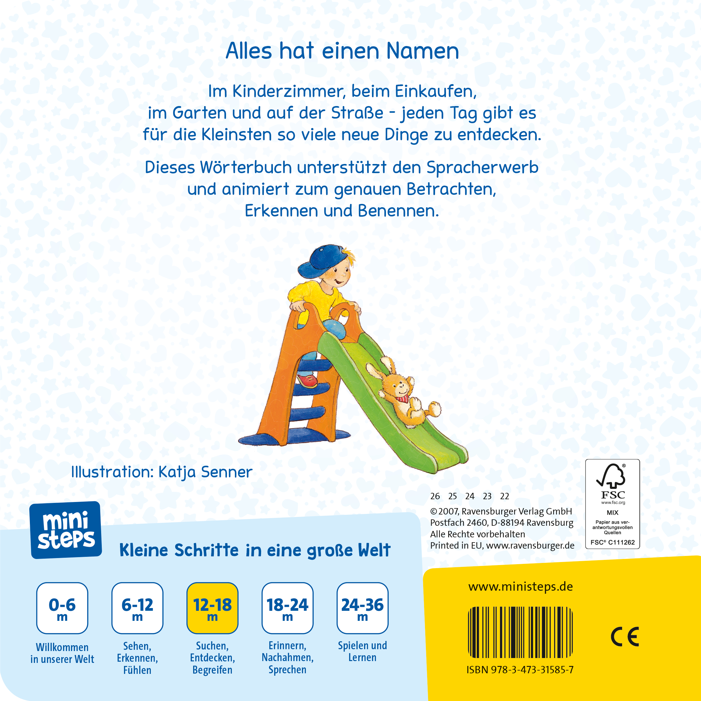 Vertrauen schenken. Das Leben entdecken.Babys und Kleinkinder wollen mit allen Sinnen die Welt entdecken.ministeps begleitet die Kleinen auf ihren ersten Schritten ins Leben. Die vielfältigen ministeps Bücher, Spiele und Spielsachen bieten für jedes Kind die optimalen Sinnesanreize. Sie fördern das Erkennen von Farben, Formen und Bildern, sie laden zum (Be-) Greifen ein und ermutigen zum Krabbeln und Sprechen.Alle ministeps Produkte sind von höchster Ravensburger Qualität. Und das spüren nicht nur die Kleinen. Auch die Großen haben die Sicherheit, den Kindern immer ideale Anreize zu bieten.