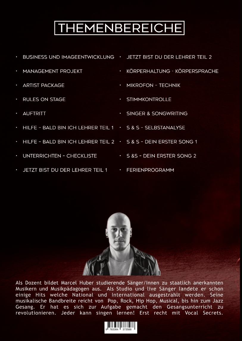 | Schlagworte | Bühnenerfahrung • Imagegestalltung • Karriereplanung • Künstlerentwicklung • Managementstrategien • Praxisorientierte Tipps • Psychologie im Gesang • Selbstvermarktung • Songwriting • Unterrichtsmethoden |
