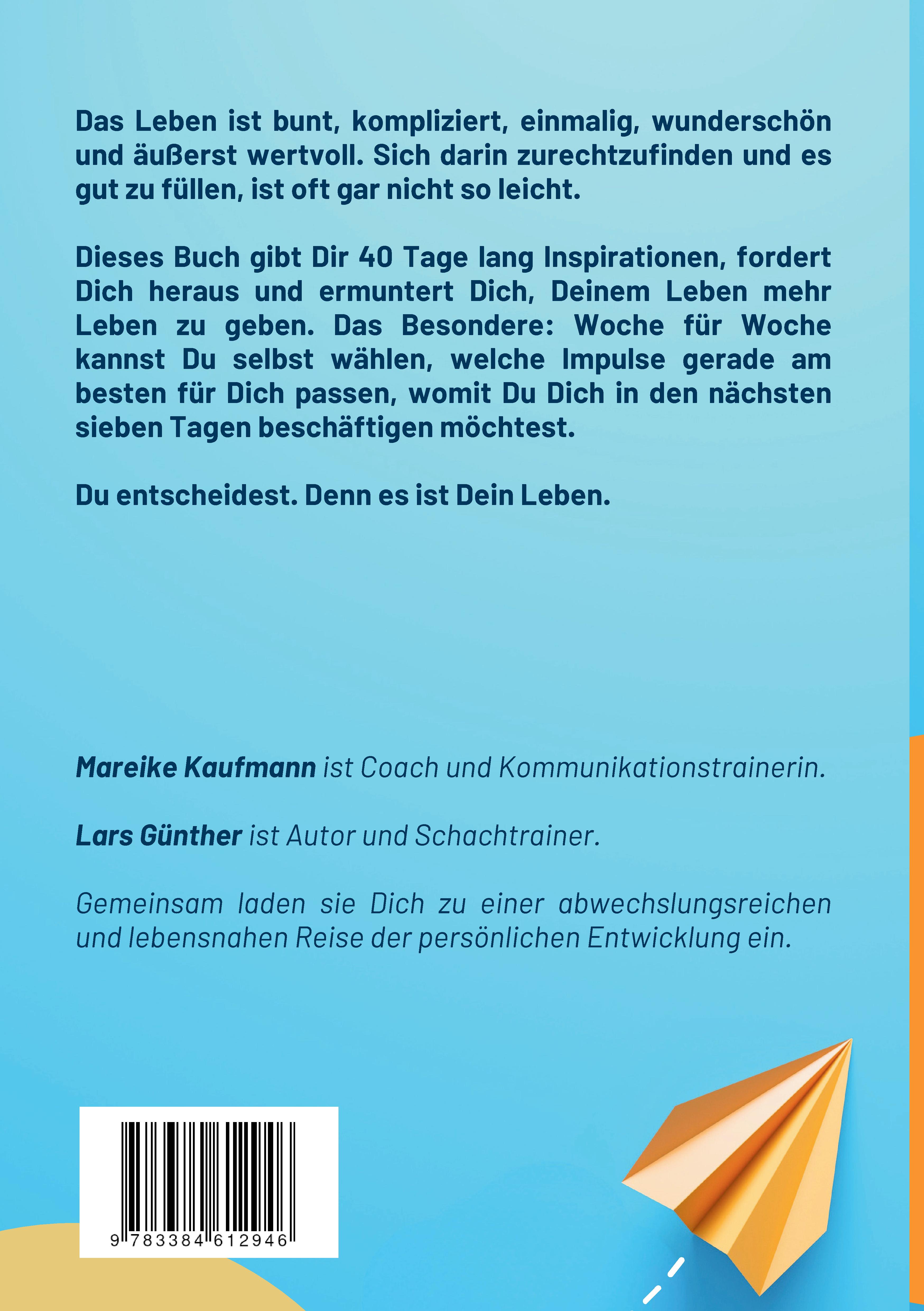 "Leben ... und zwar Deins" gibt Dir 40 Tage lang Inspirationen zur persönlichen Entwicklung - Impulse, dein Leben lebendiger zu gestalten. Das Besondere: Woche für Woche kannst Du selbst wählen, womit es für Dich in den nächsten sieben Tagen weitergeht. Dabei stehen so vielfältige Themen zur Auswahl wie Entwicklung, Dankbarkeit, Gelassenheit, positive Affirmationen, Verantwortung, Liebe, Fülle erleben, Beziehungen gestalten, Glaubenssätze oder gewaltfreie Kommunikation. Du entscheidest - wie im echten Leben!