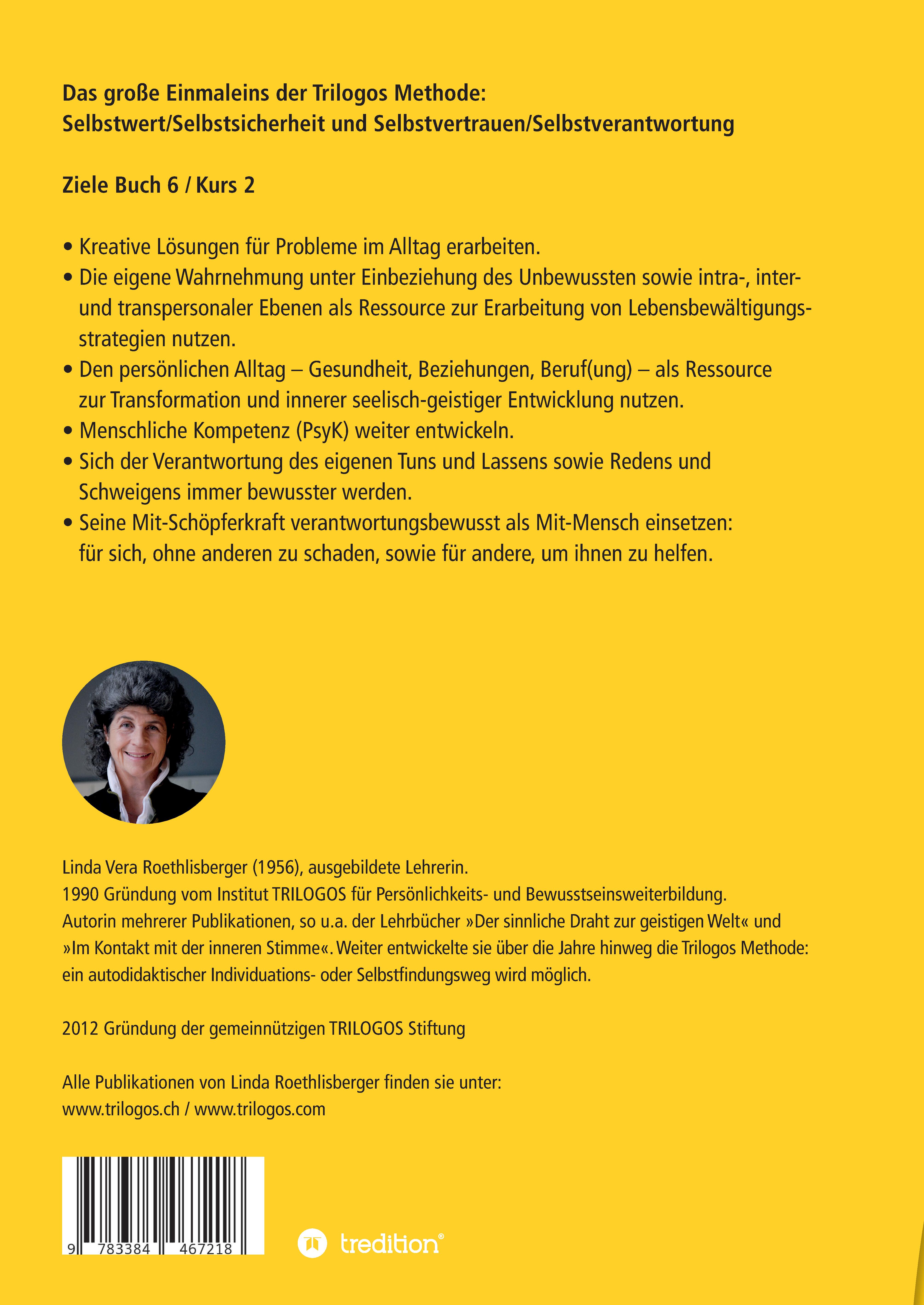 Linda Vera Roethlisberger (1956), ausgebildete Lehrerin Parallel dazu bildete sie in Bern und Paris ihr Talent als Künstlerin aus. Ihre eigenen medialen Anlagen bildete sie weiter als Schülerin von Silvia Wallimann, Prof. Dr. Milan Ryzl und Gordon Higginson und arbeitet seither u.a. auch als Medium. 1990 Gründung vom Institut TRILOGOS für Persönlichkeits- und Bewusstseinsschulung. Autorin mehrerer Publikationen, so u.a. der Lehrbücher »Der sinnliche Draht zur geistigen Welt« und »Im Kontakt mit der inneren Stimme«. Weiter entwickelte sie über die Jahre hinweg die TRILOGOS®Methode: ein autodidaktischer Individuations- oder Selbstfindungsweg wird möglich. 2012 Gründung der gemeinnützigen TRILOGOS Stiftung. _______________________________________________________________________________ Linda Vera Roethlisberger (1956), certified teacher At the same time, she developed her artistic talent in Bern and Paris. She developed and cultivated her own mediumistic capabilities as a student of Silvia Wallimann, Prof. Dr. Milan Ryzl and Gordon Higginson, and has since also been working as a medium. 1990 — Founding of TRILOGOS, an institute for personality and consciousness training. Author of numerous publications, among them the guidebooks The Sensory Channel to the Spiritual World (Der sinnliche Draht zur geistigen Welt) and In Touch With Your Inner Voice (Im Kontakt mit der inneren Stimme). Over the years, she has also developed the Trilogos Method, allowing for self-guided individuation or self-discovery. 2012 — Founding of the charitable Trilogos Foundation