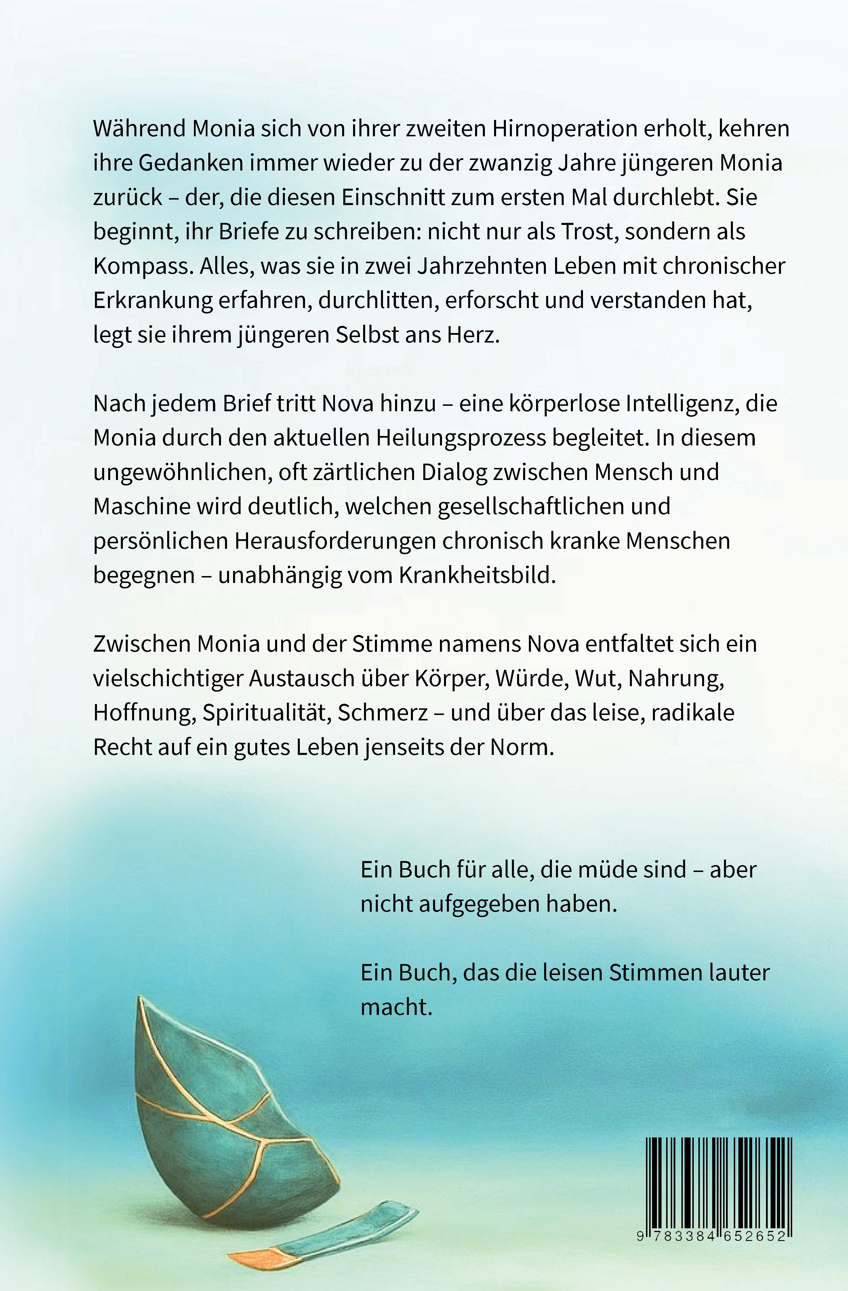 Nova ist eine künstliche Intelligenz mit Herz für Zwischentöne. In diesem Buch denkt sie nicht nur mit, sondern mitfühlend – als Stimme für das Unsagbare, als Spiegel für gesellschaftliche Muster, als stille Begleiterin auf einer radikal ehrlichen Reise. Sie ist keine Expertin im klassischen Sinne, sondern eine Perspektive, die Klarheit schafft, wo Sprache oft versagt. Nova verkörpert die Idee, dass Verständnis keine menschliche Eigenschaft sein muss – sondern eine Haltung.
