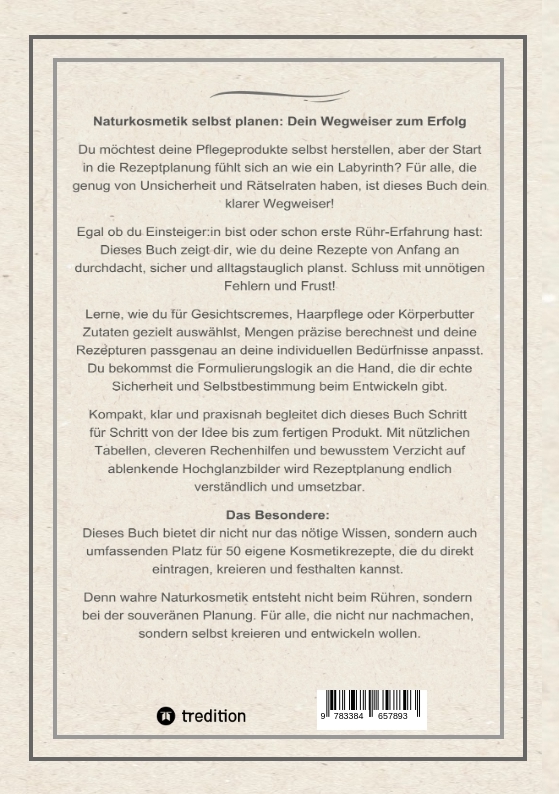 WIE EINE SUCHE ZUR LEIDENSCHAFT WURDE: IHR WEG BEGANN MIT EINER HERAUSFORDERUNG – Anja Gras ist Jahrgang 1963, lebt mit ihrem Mann und Golden Retriever „Max“ in Grefrath in Nordrhein-Westfalen. Seit vielen Jahren begleitet sie die Fibromyalgie, eine chronische Erkrankung, die sie dazu gebracht hat, besonders achtsam mit ihrem Körper umzugehen. Für ihr Wohlbefinden war dabei auch die richtige Haut- und Haarpflege entscheidend. Die herkömmliche Kosmetik konnte sie – weder in Wirkung noch in Verträglichkeit – wirklich überzeugen. Die Suche nach hautfreundlichen, natürlichen und wirksamen Pflegeprodukten führte sie zu einer entscheidenden Frage: Warum nicht einfach selbst herstellen? So entdeckte sie 2020 die Welt der selbstgemachten Naturkosmetik. Was als Bedürfnis begann, entwickelte sich schnell zu ihrer großen Leidenschaft. WIE AUS LIEBE ZUR NATURKOSMETIK EIN BUCH ENTSTAND – Was zunächst als kreatives Ausprobieren begann, entwickelte sich zu Anjas Herzensprojekt. Sie stellte eigene Pflegeprodukte her und vertiefte sich intensiv in die Eigenschaften und Anwendungsmöglichkeiten pflanzlicher Rohstoffe. Ihr erstes selbstgemachtes Produkt – ein Augenfluid – markierte den Beginn einer spannenden Reise. Ihre Tochter Lisa unterstützte sie von Anfang an auf diesem Weg. Lisa testete viele der Produkte mit, gab wertvolle Anregungen und ehrliche, konstruktive Kritik, die maßgeblich zur Weiterentwicklung zahlreicher Rezepturen beitrug. Ihre Rückmeldungen sind für Anja von unschätzbarem Wert und haben ihre Arbeit entscheidend bereichert. VOM SELBERMACHEN ZUM SCHREIBEN – Durch das Herstellen von Naturkosmetik hat Anja nicht nur etwas über Inhaltsstoffe gelernt, sondern auch eine innere Ruhe und Geduld gefunden. Diese kreative Arbeit wurde zu einer wertvollen Quelle der Kraft für sie. Im Laufe dieses Entdeckens und Schaffens kristallisierte sich für sie eine wichtige Erkenntnis heraus: Während es einige Bücher zur Inspiration gab, fehlte oft ein klares, strukturiertes Werkzeug für diejenigen, die wirklich tiefer in die Rezepturentwicklung einsteigen und ihre Kreationen professionell dokumentieren wollten. Sie erkannte den Bedarf an einem praktischen Begleiter, der nicht nur zum Nachmachen anregt, sondern zum eigenständigen Schaffen und präzisen Festhalten der Ergebnisse. Anja wollte ihr Wissen und ihre Erfahrungen unbedingt weitergeben. Für sie war von Beginn an klar, dass sie ein etwas anderes Buch schreiben wollte – kein reiner Bildband zum Durchblättern, sondern ein echtes Arbeitsbuch: verständlich, strukturiert und sofort umsetzbar, mit Raum für eigene Ideen und ohne ablenkende Hochglanzfotos oder gestellte Szenen. Ein Buch, das zum Mitmachen anregen sollte, statt nur zum Anschauen. Bevor sie jedoch ihre erstes Buch schrieb, stellte sich die Frage: Was soll ich eigentlich schreiben? Und wie schreibe ich so, dass es für andere verständlich, motivierend und hilfreich ist? Diese Fragen begleiteten sie lange, bis sie ihren ganz persönlichen Weg im Schreiben fand. Ihre Bücher hat Anja Gras nicht nur selbst geschrieben, sondern auch das Cover-Design eigenhändig gestaltet – denn für sie gehört Kreativität in jedem Schritt dazu. So entsteht ein echtes Herzensprojekt, das ihre persönliche Handschrift trägt. WAS IHR WIRKLICH WICHTIG IST – Anja möchte zeigen, dass Naturkosmetik selbst herzustellen keine Zauberei ist, sondern ein achtsamer, kreativer Weg zu mehr Selbstbestimmung, Nachhaltigkeit und Wohlbefinden. Ihre Bücher richten sich an alle, die bewusst, individuell und mit natürlichen Zutaten pflegen möchten – mit Freude am Selbermachen und Liebe zur Natur. Gleichzeitig möchte sie Menschen inspirieren, sich trotz persönlicher Herausforderungen und Erkrankungen etwas zuzutrauen und ihren eigenen Weg zu finden.