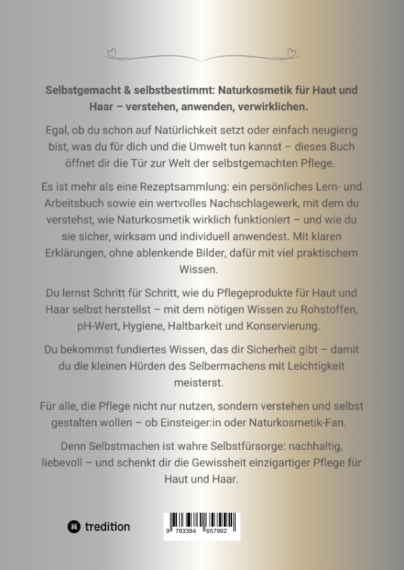 WIE EINE SUCHE ZUR LEIDENSCHAFT WURDE: IHR WEG BEGANN MIT EINER HERAUSFORDERUNG – Anja Gras ist Jahrgang 1963, lebt mit ihrem Mann und Golden Retriever „Max“ in Grefrath in Nordrhein-Westfalen. Seit vielen Jahren begleitet sie die Fibromyalgie, eine chronische Erkrankung, die sie dazu gebracht hat, besonders achtsam mit ihrem Körper umzugehen. Für ihr Wohlbefinden war dabei auch die richtige Haut- und Haarpflege entscheidend. Die herkömmliche Kosmetik konnte sie – weder in Wirkung noch in Verträglichkeit – wirklich überzeugen. Die Suche nach hautfreundlichen, natürlichen und wirksamen Pflegeprodukten führte sie zu einer entscheidenden Frage: Warum nicht einfach selbst herstellen? So entdeckte sie 2020 die Welt der selbstgemachten Naturkosmetik. Was als Bedürfnis begann, entwickelte sich schnell zu ihrer großen Leidenschaft. WIE AUS LIEBE ZUR NATURKOSMETIK EIN BUCH ENTSTAND – Was zunächst als kreatives Ausprobieren begann, entwickelte sich zu Anjas Herzensprojekt. Sie stellte eigene Pflegeprodukte her und vertiefte sich intensiv in die Eigenschaften und Anwendungsmöglichkeiten pflanzlicher Rohstoffe. Ihr erstes selbstgemachtes Produkt – ein Augenfluid – markierte den Beginn einer spannenden Reise. Ihre Tochter Lisa unterstützte sie von Anfang an auf diesem Weg. Lisa testete viele der Produkte mit, gab wertvolle Anregungen und ehrliche, konstruktive Kritik, die maßgeblich zur Weiterentwicklung zahlreicher Rezepturen beitrug. Ihre Rückmeldungen sind für Anja von unschätzbarem Wert und haben ihre Arbeit entscheidend bereichert. VOM SELBERMACHEN ZUM SCHREIBEN – Durch das Herstellen von Naturkosmetik hat Anja nicht nur etwas über Inhaltsstoffe gelernt, sondern auch eine innere Ruhe und Geduld gefunden. Diese kreative Arbeit wurde zu einer wertvollen Quelle der Kraft für sie. Im Laufe dieses Entdeckens und Schaffens kristallisierte sich für sie eine wichtige Erkenntnis heraus: Während es einige Bücher zur Inspiration gab, fehlte oft ein klares, strukturiertes Werkzeug für diejenigen, die wirklich tiefer in die Rezepturentwicklung einsteigen und ihre Kreationen professionell dokumentieren wollten. Sie erkannte den Bedarf an einem praktischen Begleiter, der nicht nur zum Nachmachen anregt, sondern zum eigenständigen Schaffen und präzisen Festhalten der Ergebnisse. Anja wollte ihr Wissen und ihre Erfahrungen unbedingt weitergeben. Für sie war von Beginn an klar, dass sie ein etwas anderes Buch schreiben wollte – kein reiner Bildband zum Durchblättern, sondern ein echtes Arbeitsbuch: verständlich, strukturiert und sofort umsetzbar, mit Raum für eigene Ideen und ohne ablenkende Hochglanzfotos oder gestellte Szenen. Ein Buch, das zum Mitmachen anregen sollte, statt nur zum Anschauen. Bevor sie jedoch ihre erstes Buch schrieb, stellte sich die Frage: Was soll ich eigentlich schreiben? Und wie schreibe ich so, dass es für andere verständlich, motivierend und hilfreich ist? Diese Fragen begleiteten sie lange, bis sie ihren ganz persönlichen Weg im Schreiben fand. Ihre Bücher hat Anja Gras nicht nur selbst geschrieben, sondern auch das Cover-Design eigenhändig gestaltet – denn für sie gehört Kreativität in jedem Schritt dazu. So entsteht ein echtes Herzensprojekt, das ihre persönliche Handschrift trägt. WAS IHR WIRKLICH WICHTIG IST – Anja möchte zeigen, dass Naturkosmetik selbst herzustellen keine Zauberei ist, sondern ein achtsamer, kreativer Weg zu mehr Selbstbestimmung, Nachhaltigkeit und Wohlbefinden. Ihre Bücher richten sich an alle, die bewusst, individuell und mit natürlichen Zutaten pflegen möchten – mit Freude am Selbermachen und Liebe zur Natur. Gleichzeitig möchte sie Menschen inspirieren, sich trotz persönlicher Herausforderungen und Erkrankungen etwas zuzutrauen und ihren eigenen Weg zu finden.