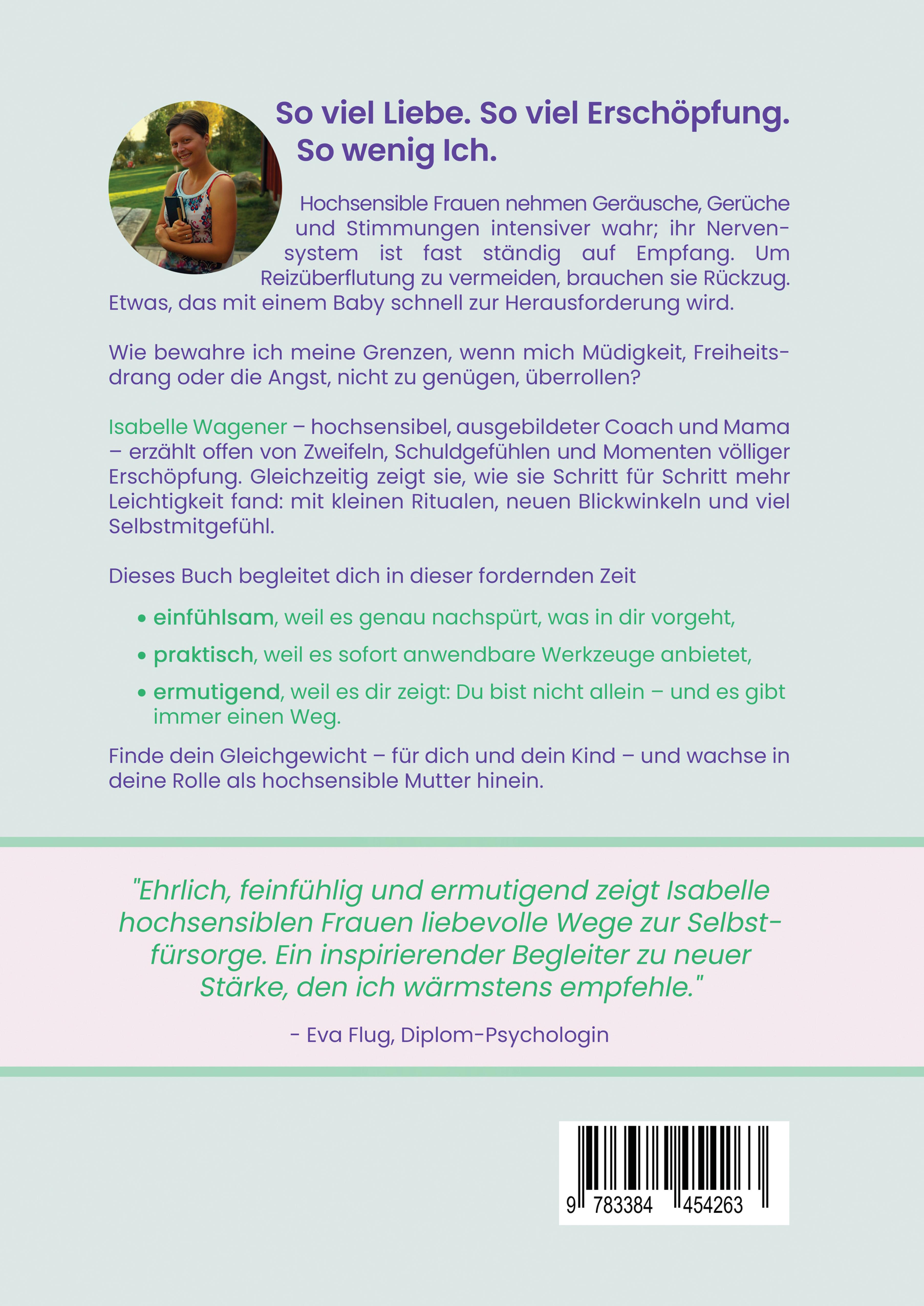 Isabelle Wagener ist freie Autorin und ausgebildeter Coach. Auf www.isilife.rocks bietet sie Unterstützung für hochsensible Frauen und insbesondere Mütter an. Als Scanner-Persönlichkeit arbeitet sie immer in verschiedenen Bereichen parallel. Das Thema Hochsensibilität begleitet sie – bewusst und unbe-wusst – schon ihr ganzes Leben. Ihr liegt viel daran, ihre Erfahrungen bezüglich der Hochsensibilität zu teilen, sodass mehr Menschen den Zugang dazu finden. Über die Jahre wurde der Umgang mit den daraus entstehen-den Herausforderungen so gut, dass sie sogar anfing, andere da-rin zu unterstützen, mehr Leichtigkeit und Selbstbestimmung zu erlangen. Bis ihr Sohn, ihr bisher größter Lehrmeister, in ihr Leben trat. Wissend, wie hart die Umstellung mit Kind für hochsensible Frauen sein kann, hat sie das Buch »Zwischen Babyblues und Mutterglück – Sanfte Impulse & Halt für hochsensible Mamas« geschrieben.