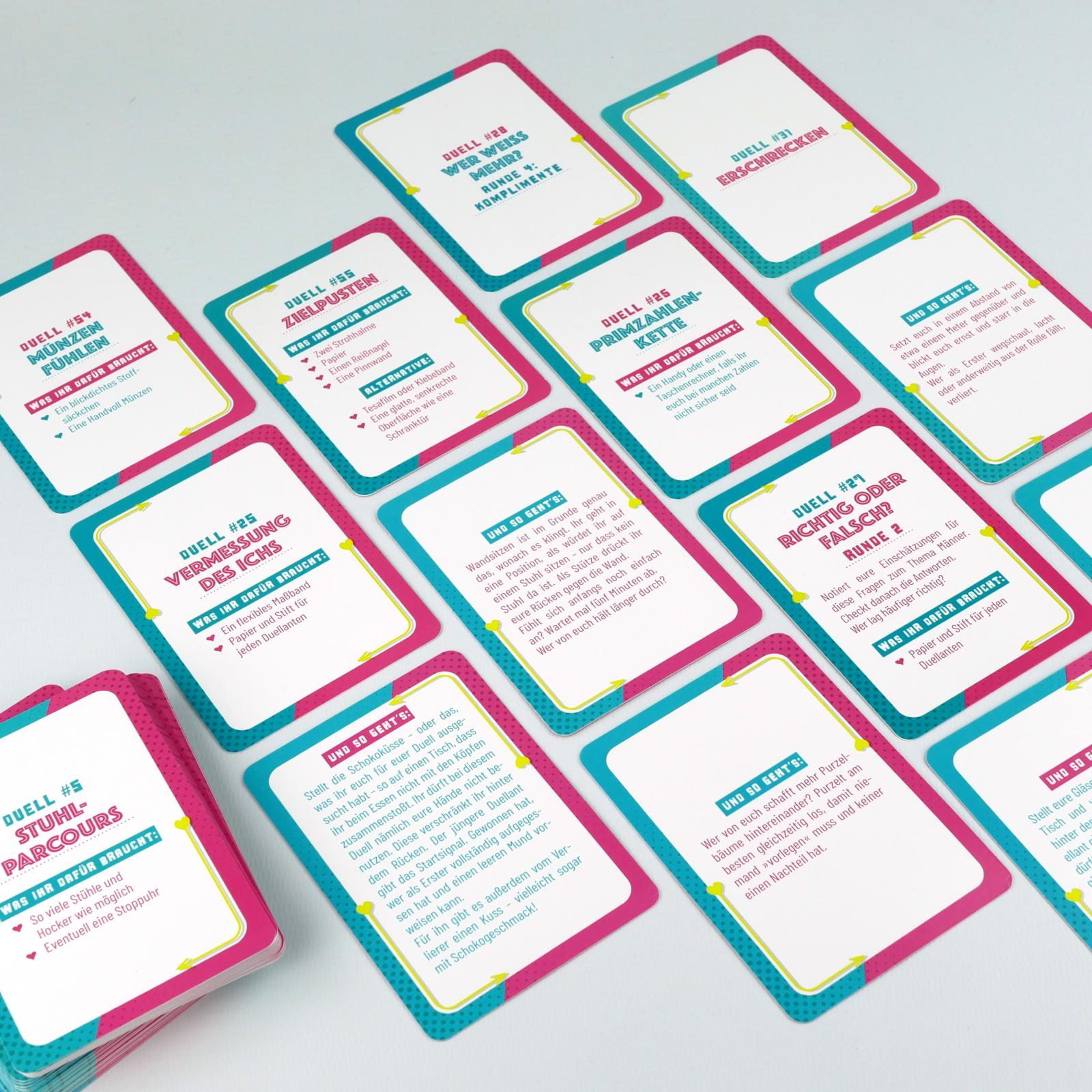 Egal, ob zu Hause, unterwegs oder bei der nächsten Date Night - dieses Kartenset ist euer perfekter Begleiter für spontane Battles, witzige Gespräche und jede Menge neue Herausforderungen.