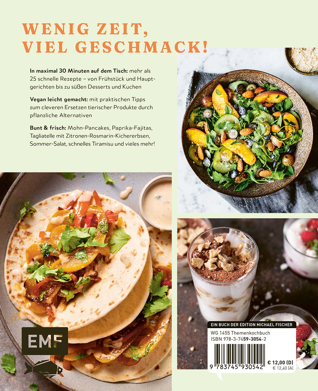 - über 25 Rezepte in maximal 30 Minuten zubereitet - von Frühstück und Hauptgerichten bis zu süßen Desserts und Kuchen!