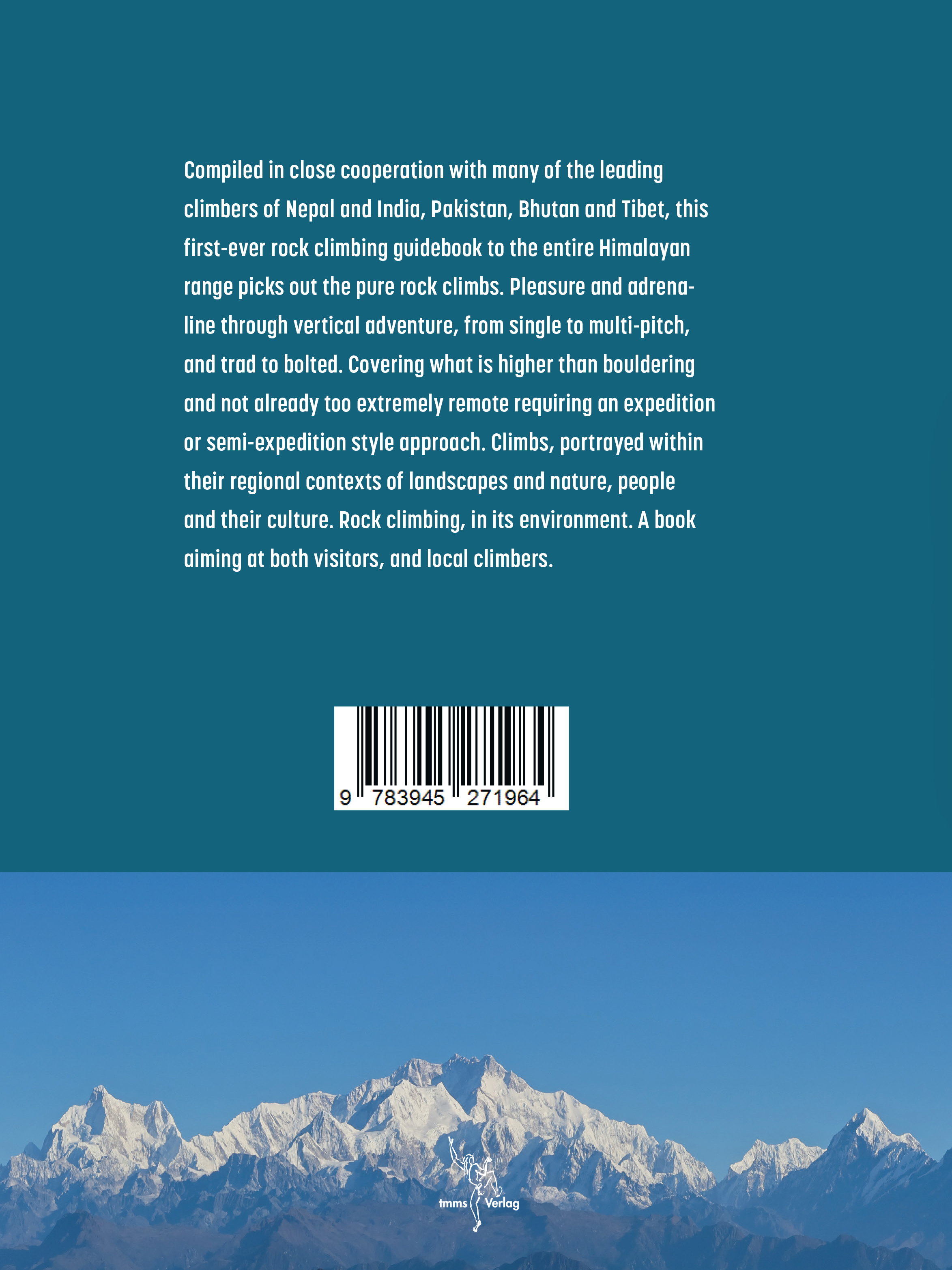 In enger Zusammenarbeit mit vielen der führenden Kletterer aus Nepal, Indien, Pakistan, Bhutan und Tibet wurden für diesen ersten Kletterführer des gesamten Himalaya-Gebirges die reinen Felsklettereien die es in den verschiedensten Tälern und Regionen gibt, herausgesucht. Autor Kai Maluck bietet seinen Lesern Vergnügen und Adrenalin durch vertikale Abenteuer, von Einzel- bis Mehrseillängen, von Trad bis Bolt. Das Buch deckt alles ab, was über das Bouldern hinausgeht, aber noch nicht so abgelegen ist, dass eine Expedition oder Semi-Expedition erforderlich wäre. Die Klettereien werden in ihrem regionalen Kontext von Landschaft und Natur sowie von Menschen und ihrer Kultur dargestellt. Klettern in seiner Umgebung. Ein Buch vom tmms-Verlag, das sich sowohl an Besucher, als auch an einheimische Kletterer richtet.