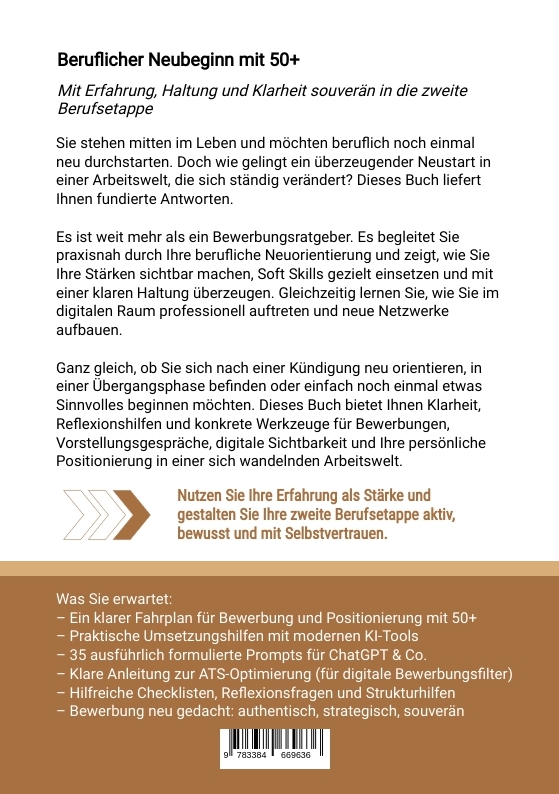 | Schlagworte | Berufliche Neuorientierung • beruflicher Neustart • Bewerbung • Bewerbung ab 50 • Karriereplanung • Lebenslauf • Selbstpositionierung • Soft Skills • Vorstellungsgespräch |