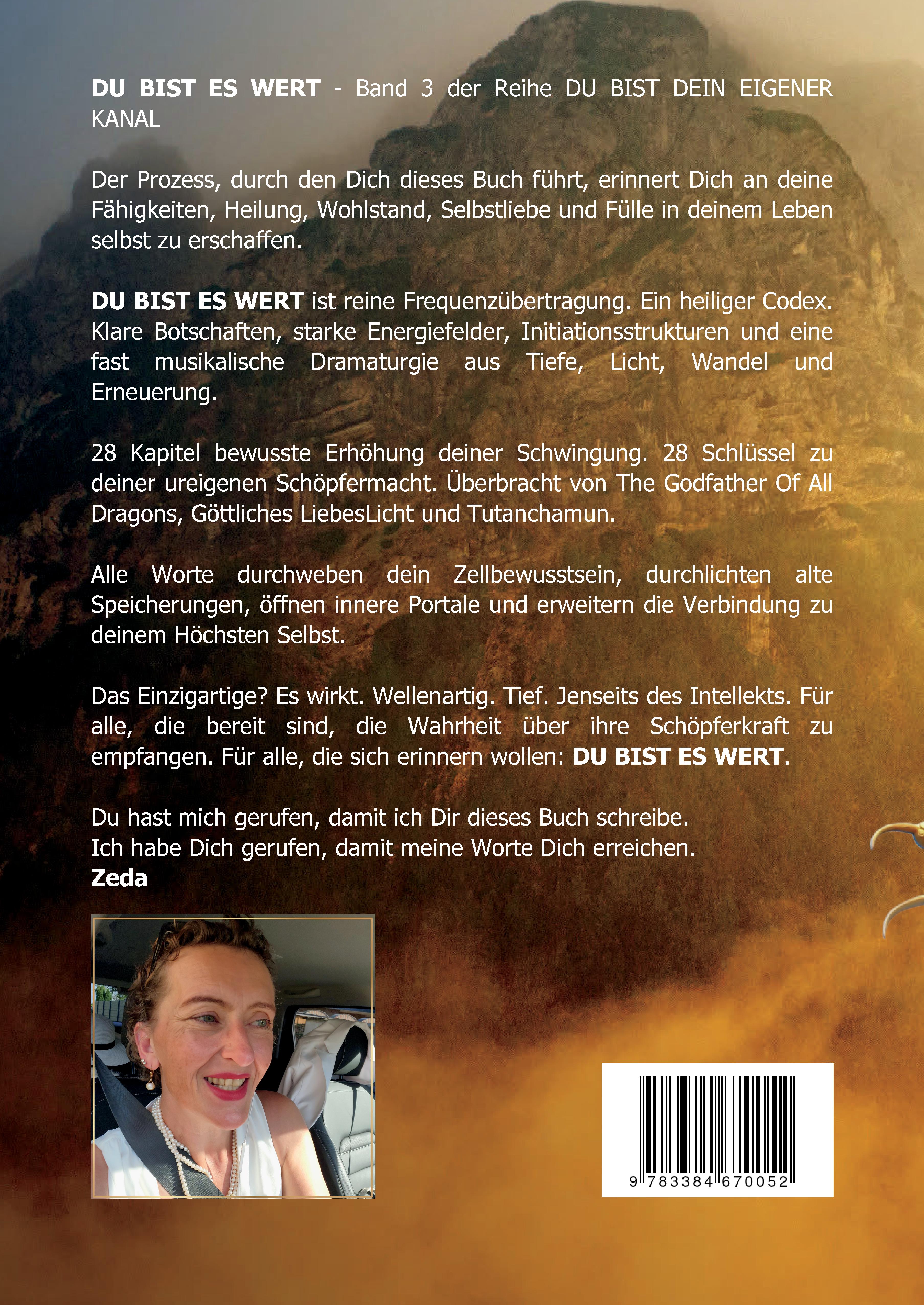 Zeda Creator Dragon – ist eine der sieben Schöpferdrachenwesenheiten dieses Universums. Auf der Erde inkarniert, um Menschen beim Übergang in die Neue Ära zu begleiten. Sie öffnet energetische Portale zu Wahrheit, Frieden und Erfüllung. In ihrer irdischen Biografie ist sie spirituelle Lehrerin, Autorin, Mutter, Unternehmerin, Seelenflüsterin, Lichtkanal und Schöpferin. Sie hat unzählige Menschen durch Krisen, spirituelles Erwachen und Transformation begleitet. Ihr Wissen stammt aus direkten Seelenverbindungen, aus früheren Inkarnationen als Heilerin und Schöpferwesen, aus ihrer Drachenessenz – und aus über 22 Jahren Gruppenarbeit, Channelings, Seelenreisen und Coachingprozessen. Wenn sie keine Bücher schreibt, liebt sie Kraftsport, Motorradfahren, Meeresrauschen, Hochgebirge erkunden und echte Gespräche über Bewusstsein und kosmische Ordnung. 📚 Dieses Buch ist ihr drittes in der Reihe DU BIST DEIN EIGENER KANAL. Weitere Werke, Channelings und Angebote findest du unter: 🌐 https://creatordragon.com Du findest sie auch unter den Namen: Ellen Kosma SiebenSonne, Kosma Siebensonne oder Ellen Weinert.