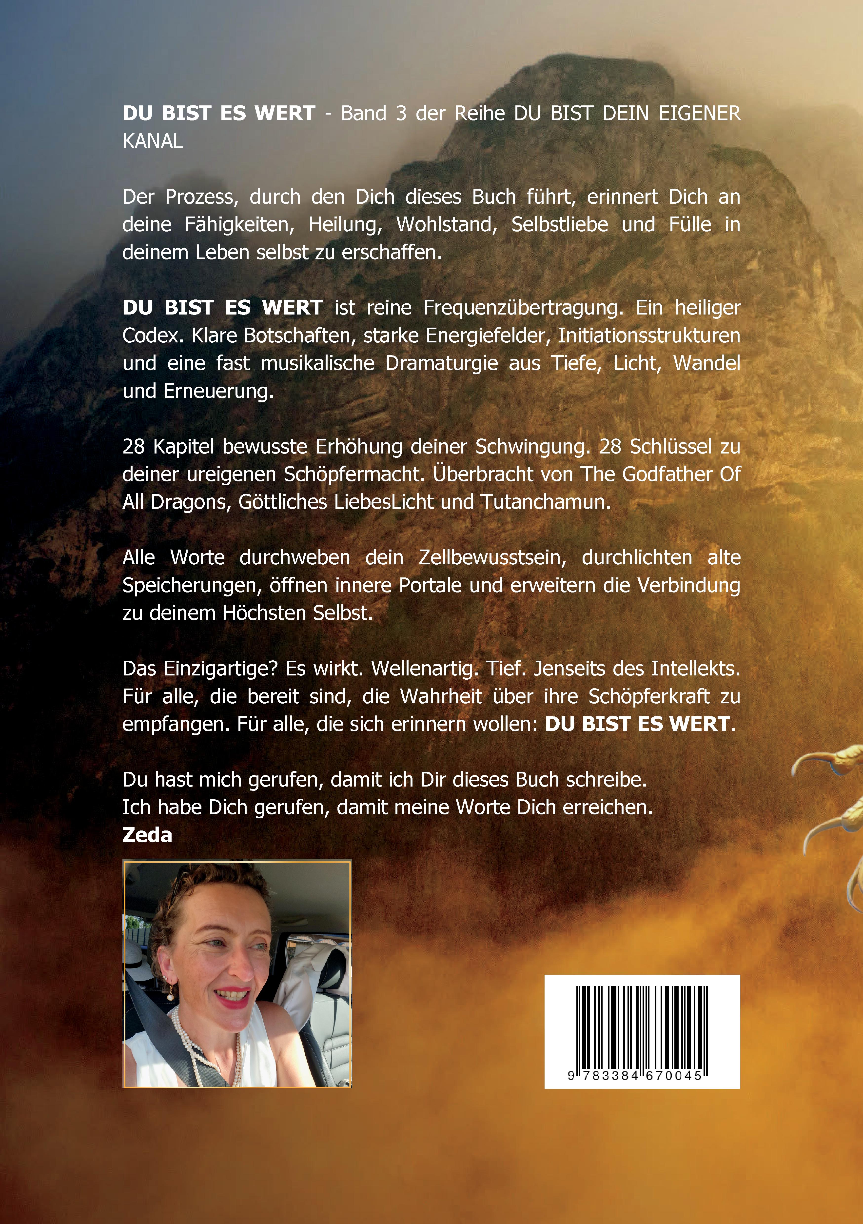 Zeda Creator Dragon – ist eine der sieben Schöpferdrachenwesenheiten dieses Universums. Auf der Erde inkarniert, um Menschen beim Übergang in die Neue Ära zu begleiten. Sie öffnet energetische Portale zu Wahrheit, Frieden und Erfüllung. In ihrer irdischen Biografie ist sie spirituelle Lehrerin, Autorin, Mutter, Unternehmerin, Seelenflüsterin, Lichtkanal und Schöpferin. Sie hat unzählige Menschen durch Krisen, spirituelles Erwachen und Transformation begleitet. Ihr Wissen stammt aus direkten Seelenverbindungen, aus früheren Inkarnationen als Heilerin und Schöpferwesen, aus ihrer Drachenessenz – und aus über 22 Jahren Gruppenarbeit, Channelings, Seelenreisen und Coachingprozessen. Wenn sie keine Bücher schreibt, liebt sie Kraftsport, Motorradfahren, Meeresrauschen, Hochgebirge erkunden und echte Gespräche über Bewusstsein und kosmische Ordnung. 📚 Dieses Buch ist ihr drittes in der Reihe DU BIST DEIN EIGENER KANAL. Weitere Werke, Channelings und Angebote findest du unter: 🌐 https://creatordragon.com Du findest sie auch unter den Namen: Ellen Kosma SiebenSonne, Kosma Siebensonne oder Ellen Weinert.