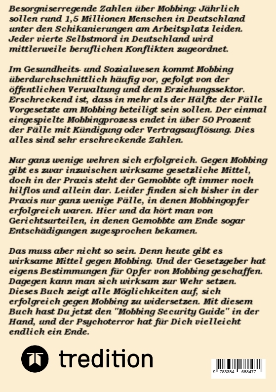 Das Buch "Mobbing verstehen und stoppen - Tipps, Beispiele und Schutzstrategien" ist ein umfassender Leitfaden für alle, die Mobbing erkennen, verstehen und aktiv bekämpfen möchten - sei es im beruflichen Umfeld, in Schulen oder im digitalen Raum. Es richtet sich sowohl an Betroffene als auch an Führungskräfte, Pädagog:innen und Mitmenschen, die nicht länger schweigend zusehen wollen.