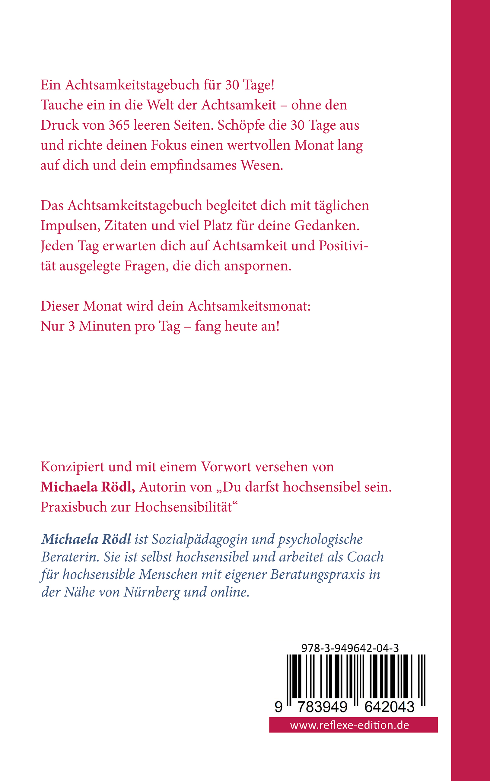 Konzipiert und mit einem Vorwort versehen von Michaela Rödl, Autorin von „Du darfst hochsensibel sein. Praxisbuch zur Hochsensibilität“