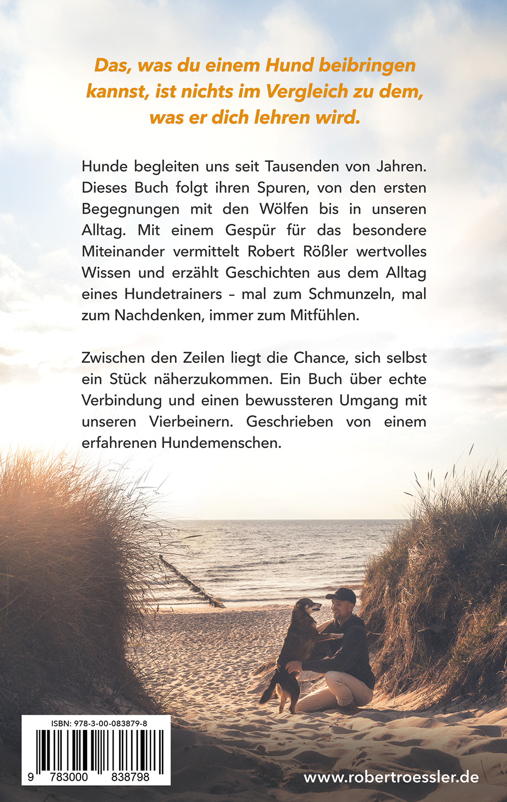 Hunde begleiten uns seit Tausenden von Jahren. Dieses Buch folgt ihren Spuren, von den ersten Begegnungen mit den Wölfen bis in unseren Alltag. Mit einem Gespür für das besondere Miteinander vermittelt Robert Rößler wertvolles Wissen und erzählt Geschichten aus dem Alltag eines Hundetrainers - mal zum Schmunzeln, mal zum Nachdenken, immer zum Mitfühlen. Zwischen den Zeilen liegt die Chance, sich selbst ein Stück näherzukommen. Ein Buch über echte Verbindung und einen bewussteren Umgang mit unseren Vierbeinern. Geschrieben von einem erfahrenen Hundemenschen.