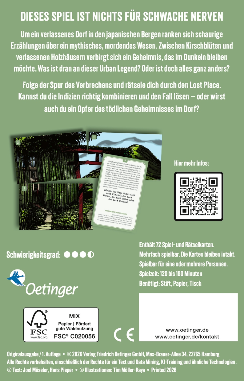 | Schlagworte | Detektivspiel für Erwachsene • düsterer Kriminalfall • Erkundung verlassener Orte • Escape Game • für Mystery-Fans • interaktives Krimi-Spiel • Japanische Mythologie • Japan Krimi • Japan-Reise • Lost Place • Lost Place Fotografie • Rätselspiel Erwachsene • Spiel vergessene Orte • urban explorer • Urban legend |