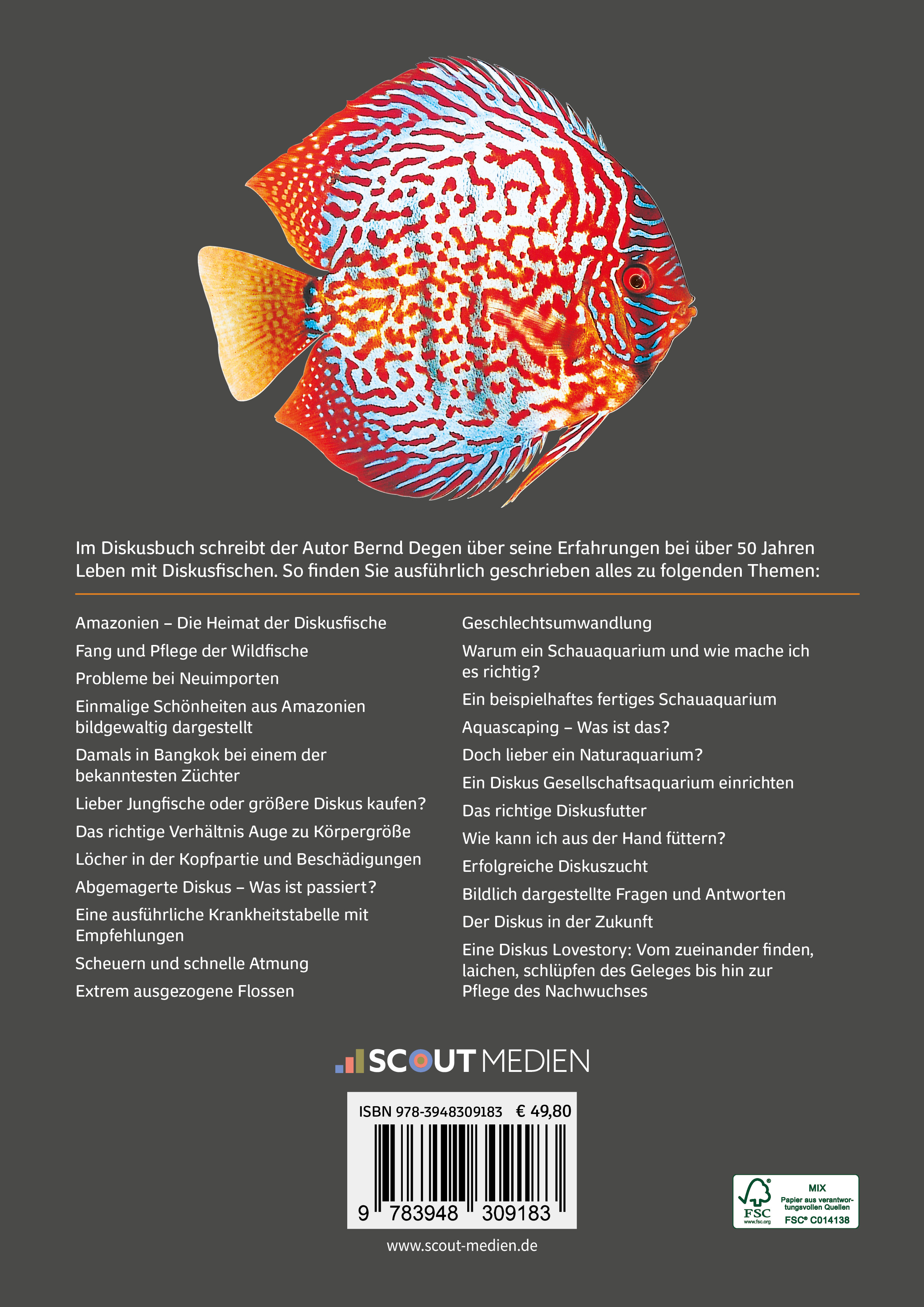 Im Diskusbuch schreibt der Autor Bernd Degen über seine Erfahrungen bei über 50 Jahren Leben mit Diskusfischen. So finden Sie ausführlich geschrieben alles zu folgenden Themen: