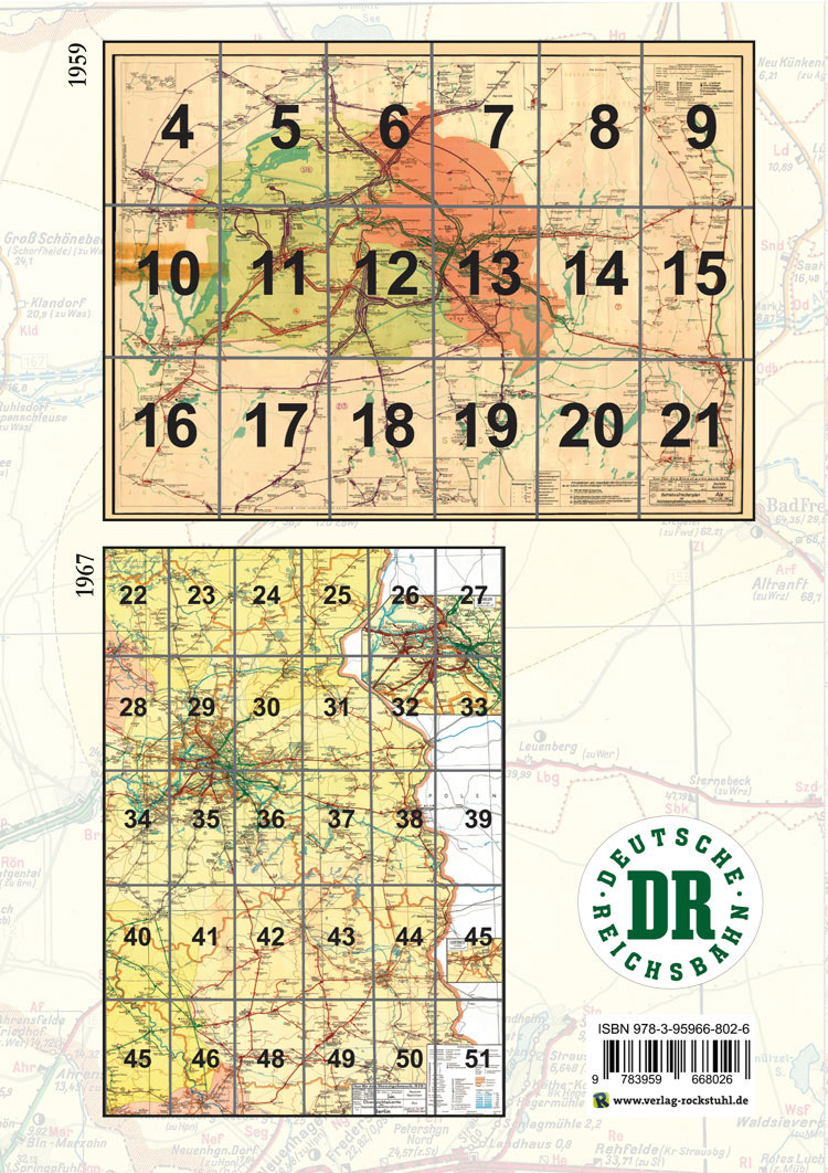 Die Übersichtskarten der Reichsbahndirektion Berlin aus den Jahren Mai 1959 und August 1967 dokumentieren eindrucksvoll die Entwicklung des Eisenbahnnetzes in der Hauptstadtregion während der DDR-Zeit. Sie zeigen das Streckennetz, Bahnhöfe und wichtige Betriebsstellen im Zuständigkeitsbereich der Direktion Berlin und verdeutlichen zugleich die Veränderungen, die sich innerhalb von nur acht Jahren im Schienenverkehr vollzogen haben. Die Karten sind nicht nur für Eisenbahnhistoriker von Bedeutung, sondern bieten auch für an Verkehrsgeschichte Interessierte einen anschaulichen Einblick in die Infrastruktur der Deutschen Reichsbahn.