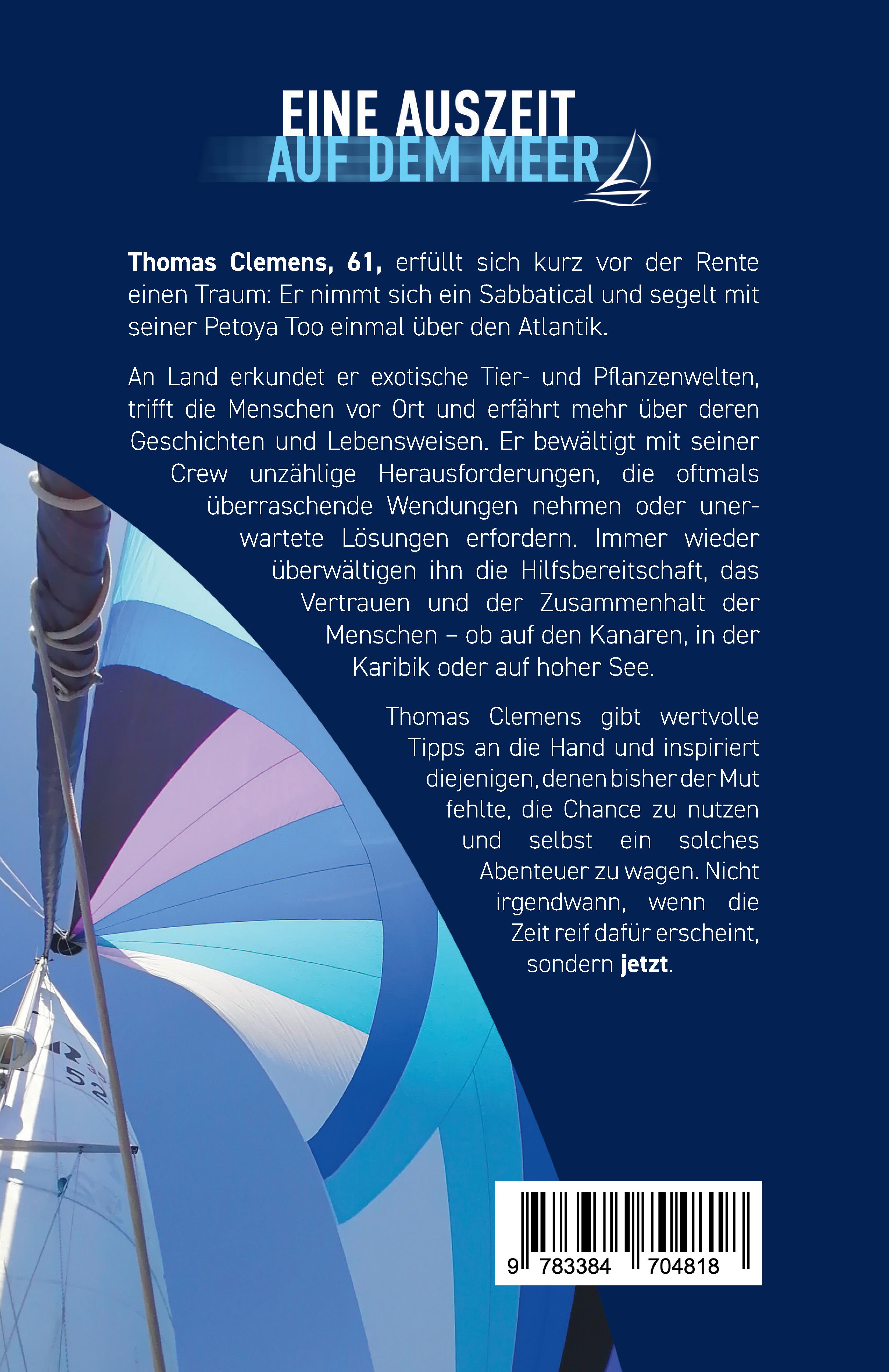 Eine Auszeit auf dem Meer und wie ich mir diesen Traum im Alter von 61 Jahren erfülle.Noch vor der Rente nehme ich ein Sabbatical und segle mit meiner Petoya Too einmal über den Atlantik und zurück. Es geht um die Vorbereitungen und Durchführung einer langen Reise, die Leinen loszuwerfen, über den Tellerrand zu schauen, andere Länder zu erkunden, exotische Tier- und Pflanzenwelten kennen zu lernen. Ich erfahre, mit welchen Problemen die Menschen vor Ort leben, welche Geschichten und Lebensweisen sie haben. Ich bewältige mit meinen Crews unzählige Herausforderungen mit oftmals überraschende Wendungen. Immer wieder überwältigt mich die Hilfsbereitschaft, das Vertrauen und der Zusammenhalt der Menschen - ob auf den Kanaren, in der Karibik oder auf hoher See. In diesem Buch gebe ich den Lesern wertvolle Tipps an die Hand und inspiriere diejenigen, denen bisher der Mut fehlte, die Chance zu nutzen und selbst ein solches Abenteuer zu wagen. Nicht irgendwann, wenn die Zeit reif dafür erscheint, sondern jetzt.Mein Buch dreht sich um die Verwirklichung eines Lebenstraumes und darum, ihn nicht nur in Gedanken mit sich herumzutragen, sondern den inneren Schweinehund zu überwinden und die Leinen loszuwerfen. Und es geht darum, sich auf der Reise um den Atlantik immer neuen Herausforderungen zu stellen und sie zu bewältigen.Das Buch zeigt auf, wie man ein Sabbatical und eine lange Reise verwirklichen kann, welche Hürden damit verbunden sind und wie sich diese bewältigen lassen. Es lädt dazu ein, Träume nicht auf später zu verschieben, denn niemand weiß, ob es ein "später" gibt. Das Buch zeigt auf, dass Zweifel überwunden werden können und man an seinem Ziel, an seinen Wünschen und Träumen festhalten kann, solange man körperlich noch die Kraft dazu hat. Es handelt von Aufbruch, Vertrauen ins Leben und Durchhaltevermögen.