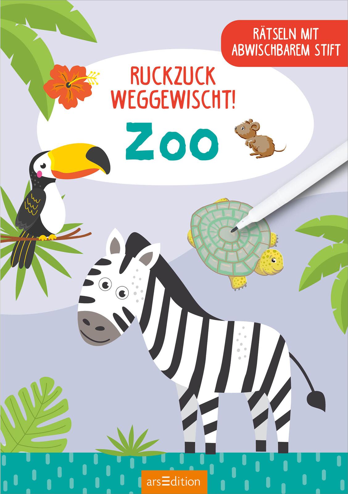 Dem Heft liegt ein abwischbarer Stift bei, mit dem die Kinder die netten Rätsel rund um Löwe, Elefant & Co. immer wieder neu lösen können. Ist eine Lösung falsch, lässt sich die Tinte ganz ohne Wasser oder Reinigungsmittel nur mit einem Taschentuch entfernen - einfach ruckzuck weggewischt!