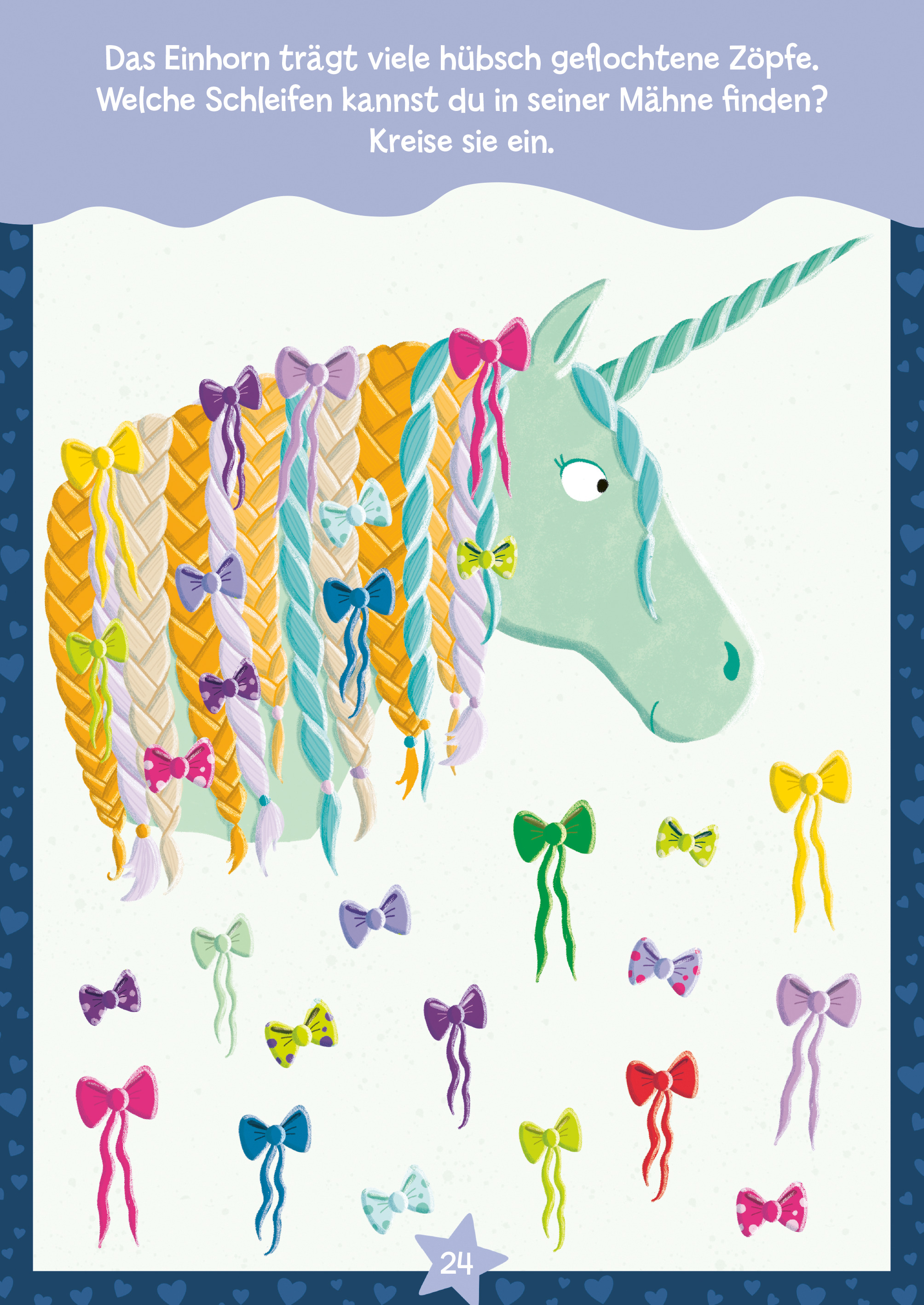 Rätseln, knobeln, entdecken – mit Pferden & Einhörnern! Dieses bunte Rätselheft begeistert Kinder ab 6 Jahren mit 96 Seiten voller abwechslungsreicher Aufgaben. Viele verschiedene Rätselarten sorgen für stundenlangen Spaß: Sudoku, Labyrinthe, Finde den Unterschied, Malen nach Symbolen, Schatten zuordnen, Nachspuren, Zählen, Logikreihen und vieles mehr. Die Rätsel sind kindgerecht gestaltet und steigern sich von leicht bis knifflig – so bleibt die Motivation lange erhalten. Neben Spaß und Abwechslung fördert das Heft ganz nebenbei Konzentration, Geduld und logisches Denken. Ob als Geschenk für Pferde- und Einhornfans, als Beschäftigung für Reisen oder als kreative Alternative zum Bildschirm: Mit diesem Rätselmix erleben Kinder viele magische Knobelstunden!