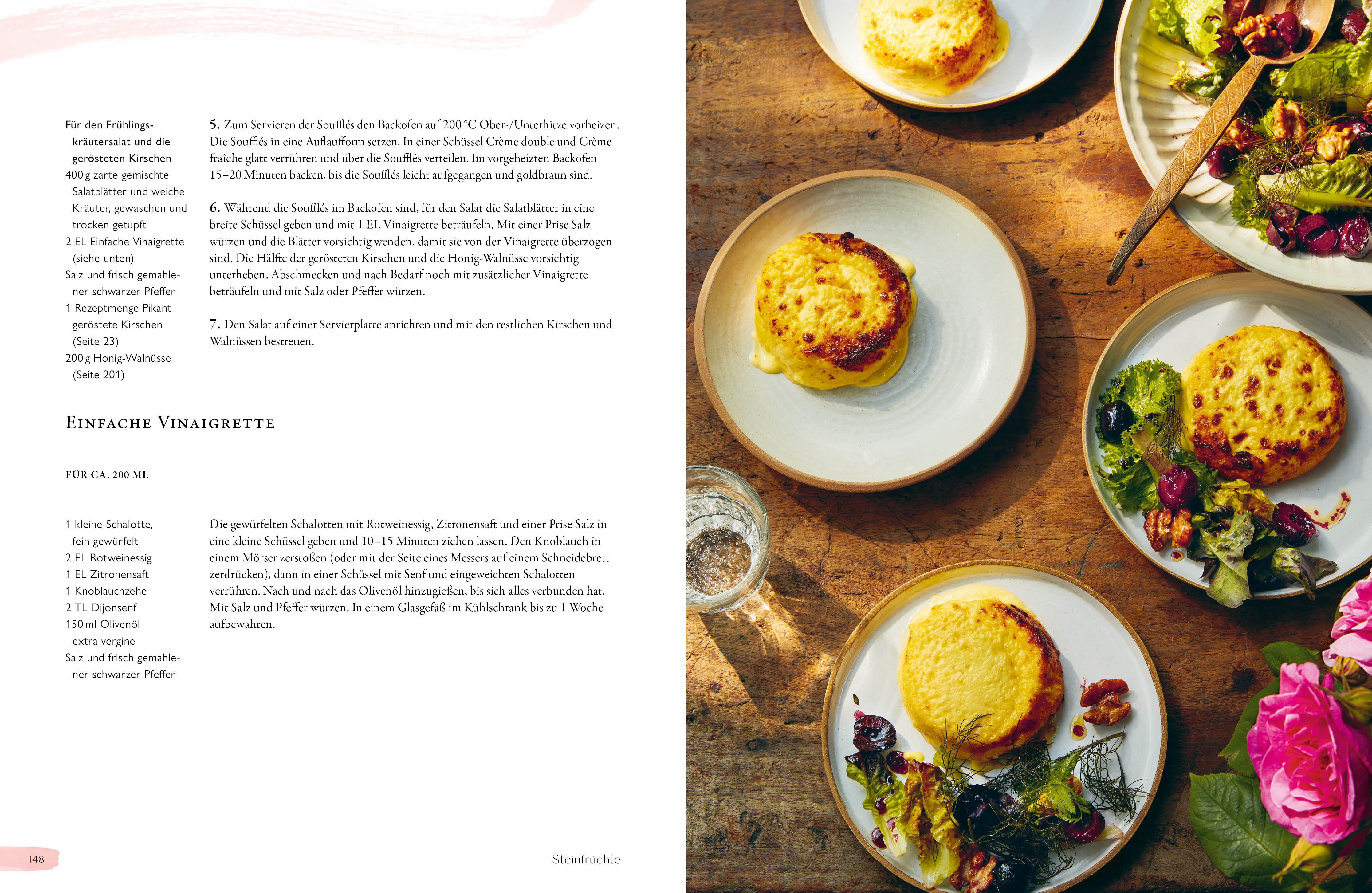 - Über 80 kreative Obst-Rezepte für jede Saison: Von Polenta-Brombeer-Muffins über Aprikosen-Muskat-Tarte bis zu Entenbrust mit schwarzer Johannisbeere. Alle Gerichte vereinen fruchtige Aromen mit saisonaler Vielfalt. Auch klassische Ideen wie Obstkuchen oder frische Nachspeisen finden ihren Platz.