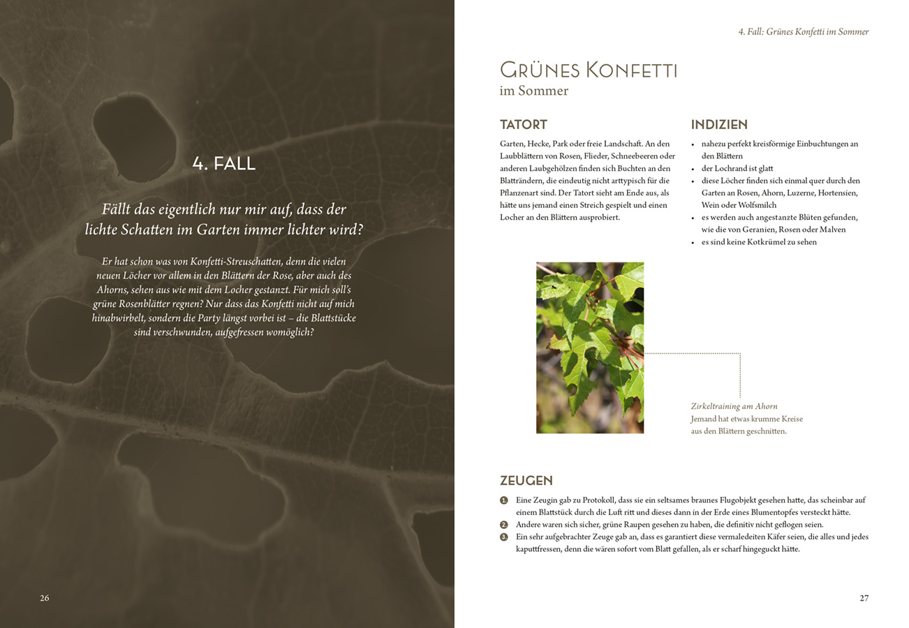 Verbrechen aller Art üben auf Menschen eine besondere Faszination aus, aber wer würde darauf kommen, dass das Böse gleich hinter dem Gartentor lauert? Wirft man einen Blick in den Mikrokosmos zwischen Beet und Topf, kommt man aus dem Staunen nicht heraus. Denn von Insekten über Pflanzen bis hin zu kleinen Säugetieren – der Garten ist voller Verbrecher! Werde zum Kommissar im eigenen Garten: 20 Fälle vom Vandalismus bis zum heimtückischen Mord sind zu lösen. Wer ist verdächtig? Lässt sich der Täter anhand seiner biologischen Merkmale überführen? Welches Motiv hatte er? Geh‘ auf Spurensuche! Oder schlägst du dich etwa auf die Seite des Bösen, um Blattläuse, Schnecken und Co. loszuwerden?