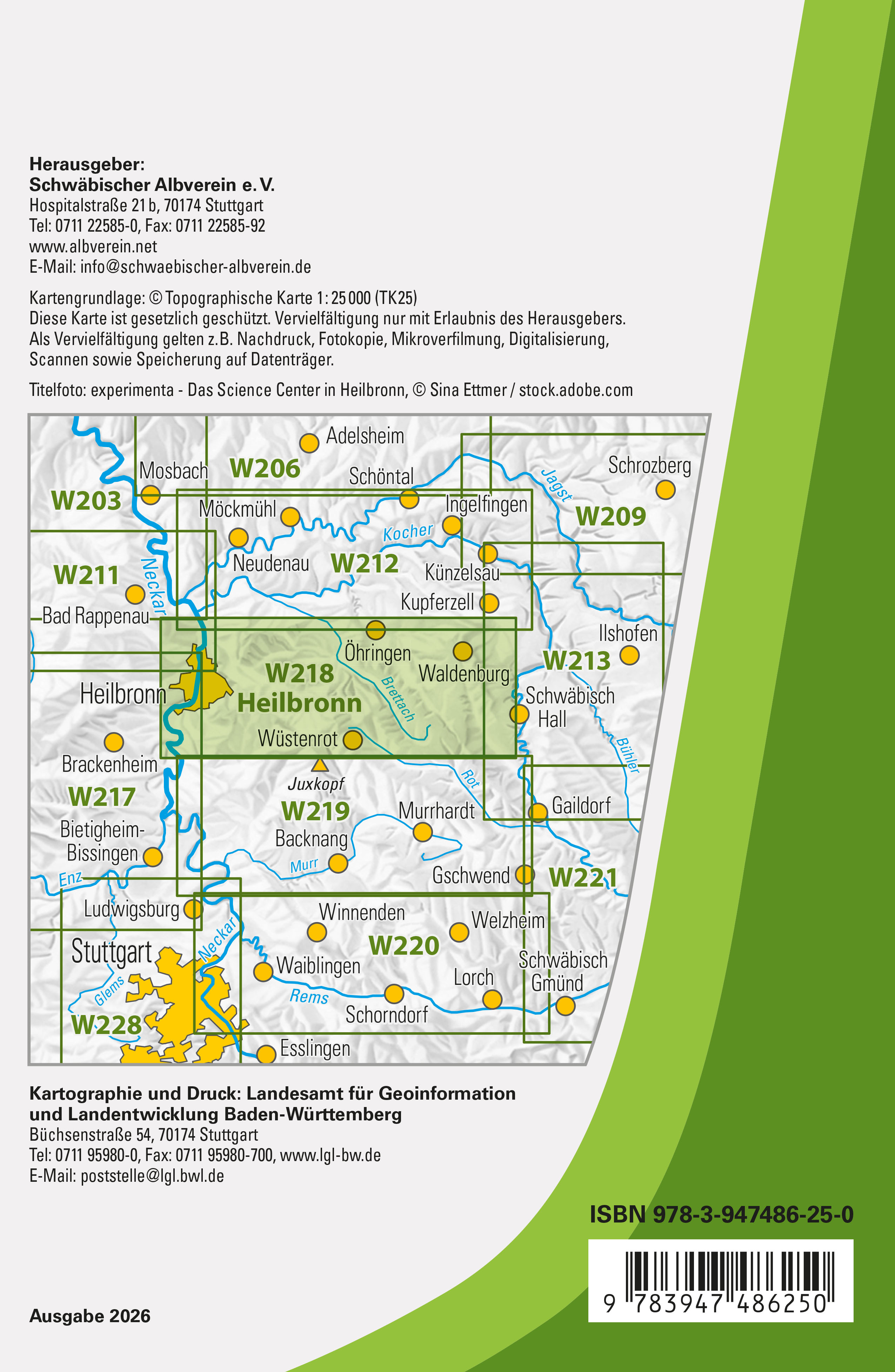 | Reihe/Serie | Karte des Schwäbischen Albvereins ; W218 | Wanderkarten 1:25 000 ; W218 |