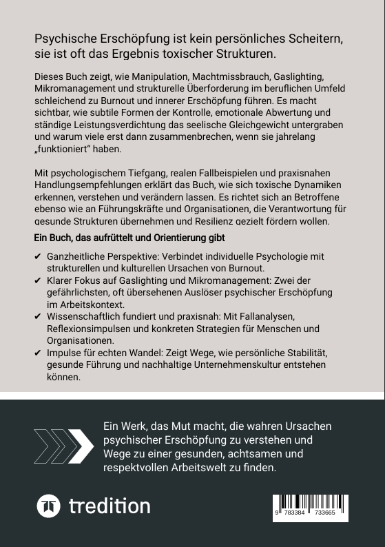 | Schlagworte | Burnout • Gaslighting • Konfliktbewältigung • Machtmissbrauch • Manipulation • Mikromanagement • Narzissmus im Beruf • psychische Erschöpfung • Resilienz • Toxische Arbeitskultur |