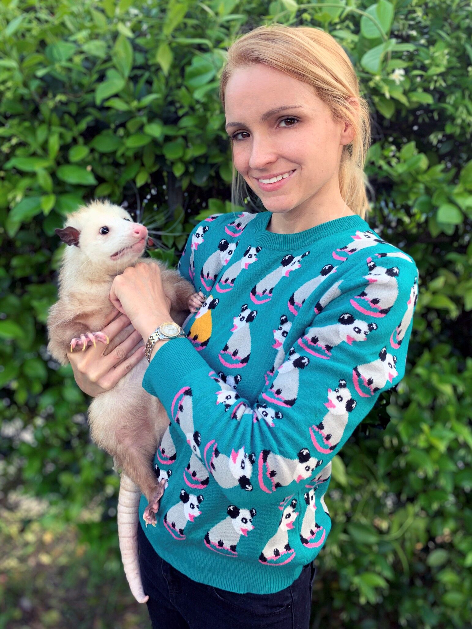 Ally Burguieres führt eine Auffangstation für Opossums und ist der Mensch hinter dem Instagram-Account @ItsMeSesame, der Heimat der beliebtesten Opossums in den sozialen Medien. Wenn sie sich nicht gerade um ihre geretteten Tiere kümmert, arbeitet sie als Künstlerin und führt zwei Boutiquen und eine Kunstgalerie in New Orleans.