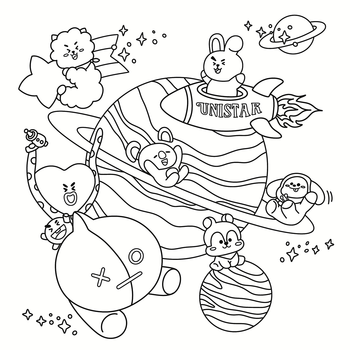 Ausmalspaß mit den Charakteren aus dem BT21-Universum!