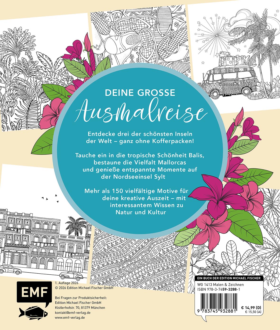 | Schlagworte | Aktivität bei Langeweile • Ausmalreise • Auszeit vom Alltag • Bali • Buntstifte • Feierabend-Beschäftigung • Inselleben • Malbuch für den Urlaub • Mallorca • Sommer-Beschäftigung • Sylt • Urlaubsmotive ausmalen • Weltreise zum Ausmalen |