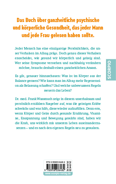 Dr. med. Frank Wassmuth zeigt in diesem unterhaltsam und persönlich erzählten Ratgeber auf, was die geistigen Kräfte schwächt und was hilft, diese wieder aufzufüllen. Denn erst, wenn Körper und Geist durch gesunde Ernährung, Vitamine, Entspannung und Bewegung gestärkt sind, haben wir die Kraft, uns wirklich mit unserem Leben auseinanderzusetzen – und es nach den eigenen Regeln neu zu gestalten.