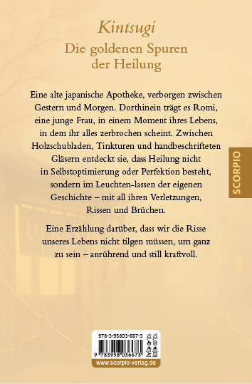 In kleinen Schritten wird sie von der Apothekerin, Frau Yakushi, in die uralte japanische Kunst des Kintsugi eingeführt: Keramik, die nach dem Zerbrechen nicht versteckt, sondern mit Gold repariert wird. Was einst ein Riss war, wird zur Linie der Schönheit.