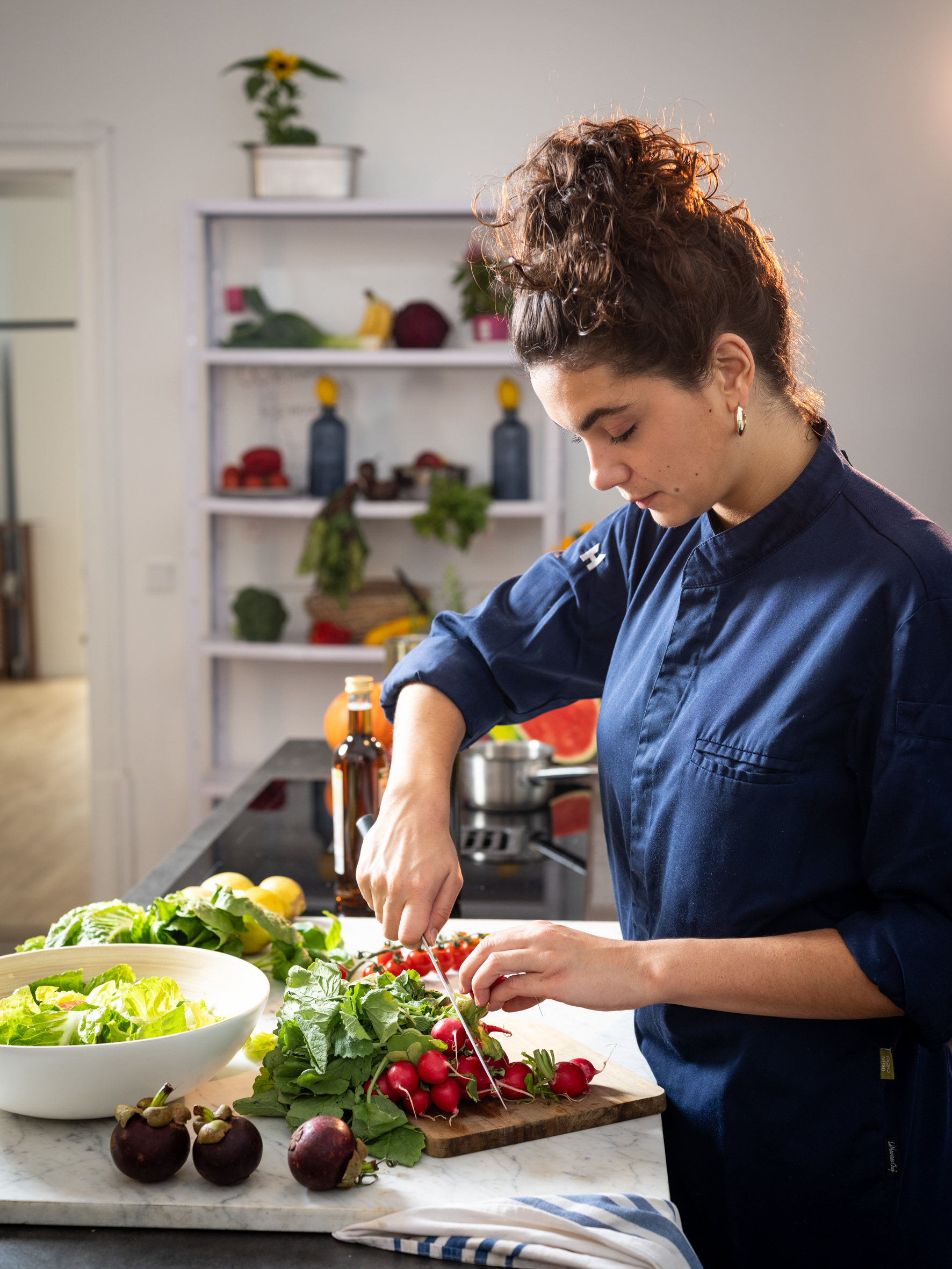 Lucie Fischer-Chapalain, Jahrgang 2002, hat gerade ihre Kochausbildung in Potsdam beendet. Die gebürtige Bretonin mit deutsch-französischen Wurzeln träumte schon als Kind davon Köchin zu werden. Sie liebt es, anderen eine Freude zu machen und mit unterschiedlichen Produkten und Zubereitungstechniken zu experimentieren: »Das geht beides leider nicht immer zusammen! Wenn ich experimentiere, dann kann es auch mal etwas schräg werden.«