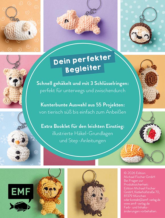 Ob Frosch, Schaf, Seepferdchen, Elefant, Eis am Stiel oder Coffee to go: Mit diesem Set hast du immer die passende Inspiration griffbereit. Einfach Lieblingsprojekt, Booklet und Häkelsachen einpacken und überall loslegen. Und schon baumeln deine neuen Lieblingsbegleiter an Schlüsselbund, Handtasche oder Rucksack!