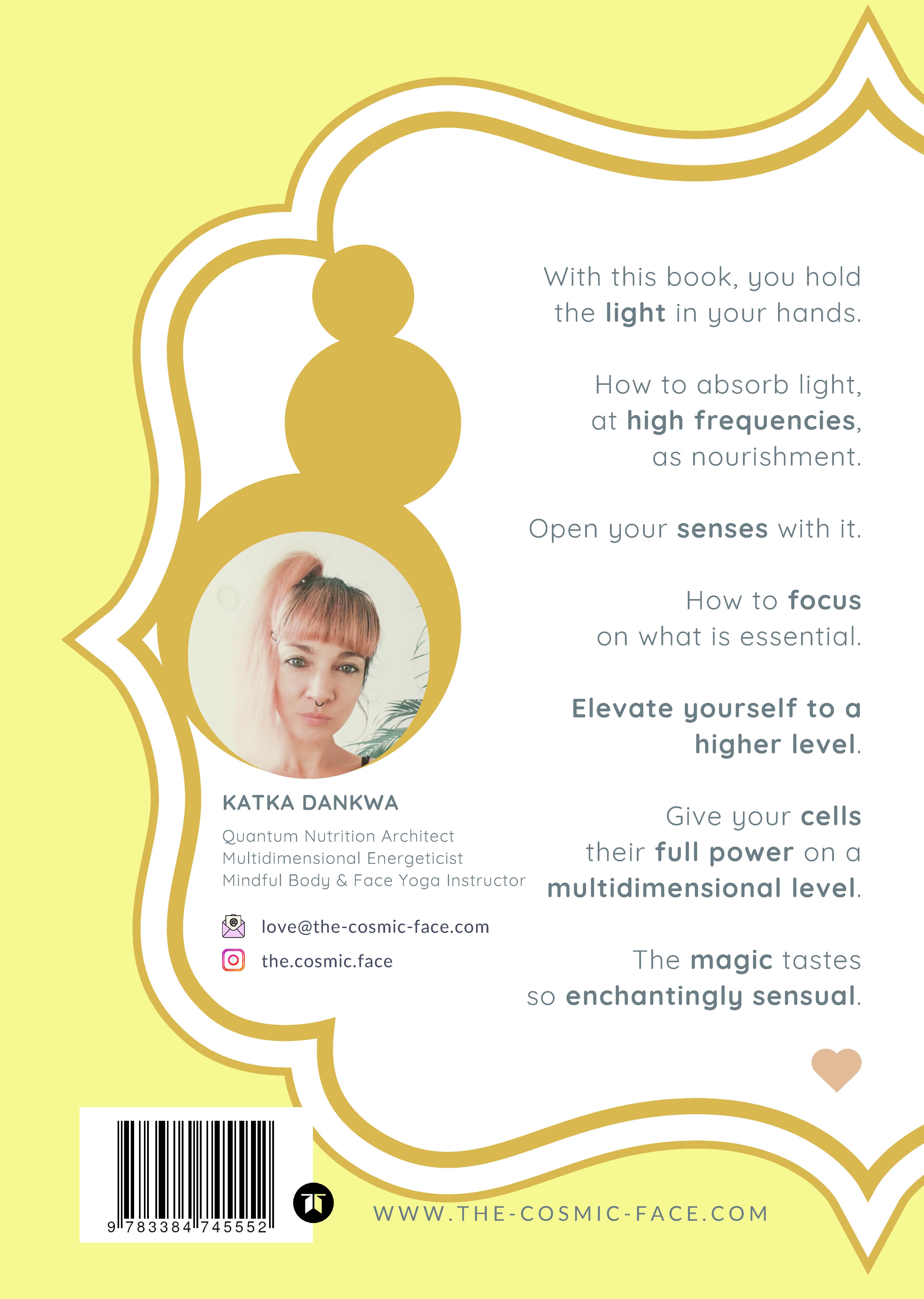 Mit diesem Buch hälst du das Licht in deinen Händen.Wie du das Licht, in hoher Frequenz als Nahrung aufnimmst.Deine Sinne damit öffnest.Wie du dich auf das wesentliche fokussierst.Dich auf ein höheres Level begibst.Deinen Zellen auf multidimensionaler Ebene die volle Power schenkst.Und was deine Seele und deinen Körper bezaubernd sinnlich genießen lässt, zuckerfrei, glutenfrei und vegan.Für Erwachsene als auch wunderbar für Kinder